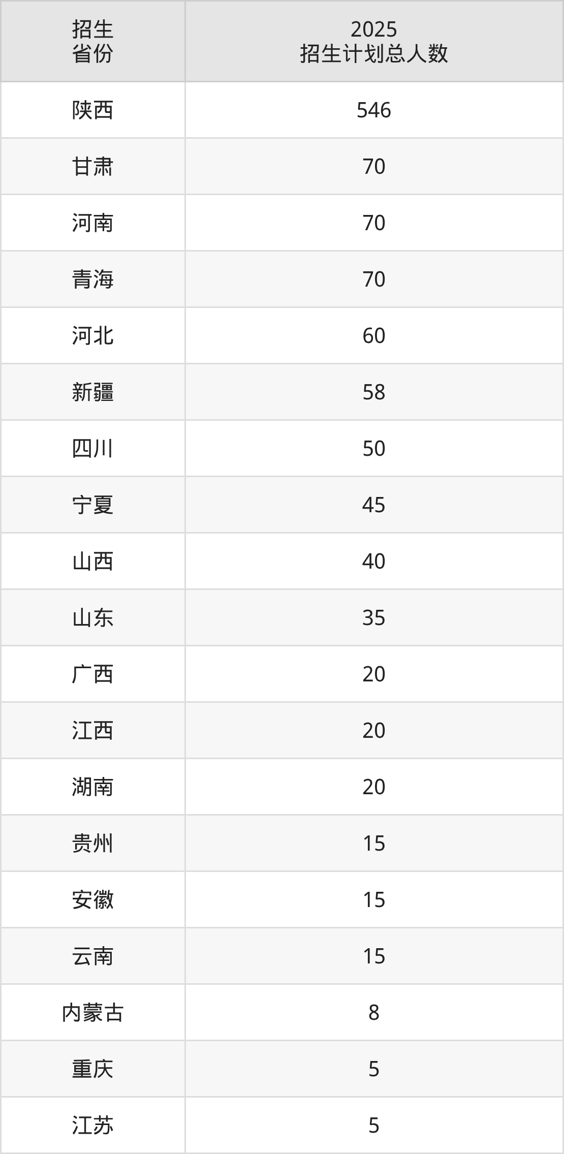 2025年陕西财经职业技术学院面向全国19个省市开展专科招生;招生专业共39个,招生人数共1167人。2025年在陕西省招生计划总人数是546人,其中,陕西财经职业技术学院在陕西省招生人数最多的是大数据与会计。陕西财经职业技术学院在各省具体招生人数情况如下表。