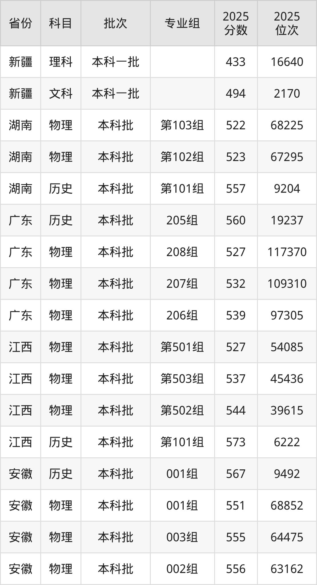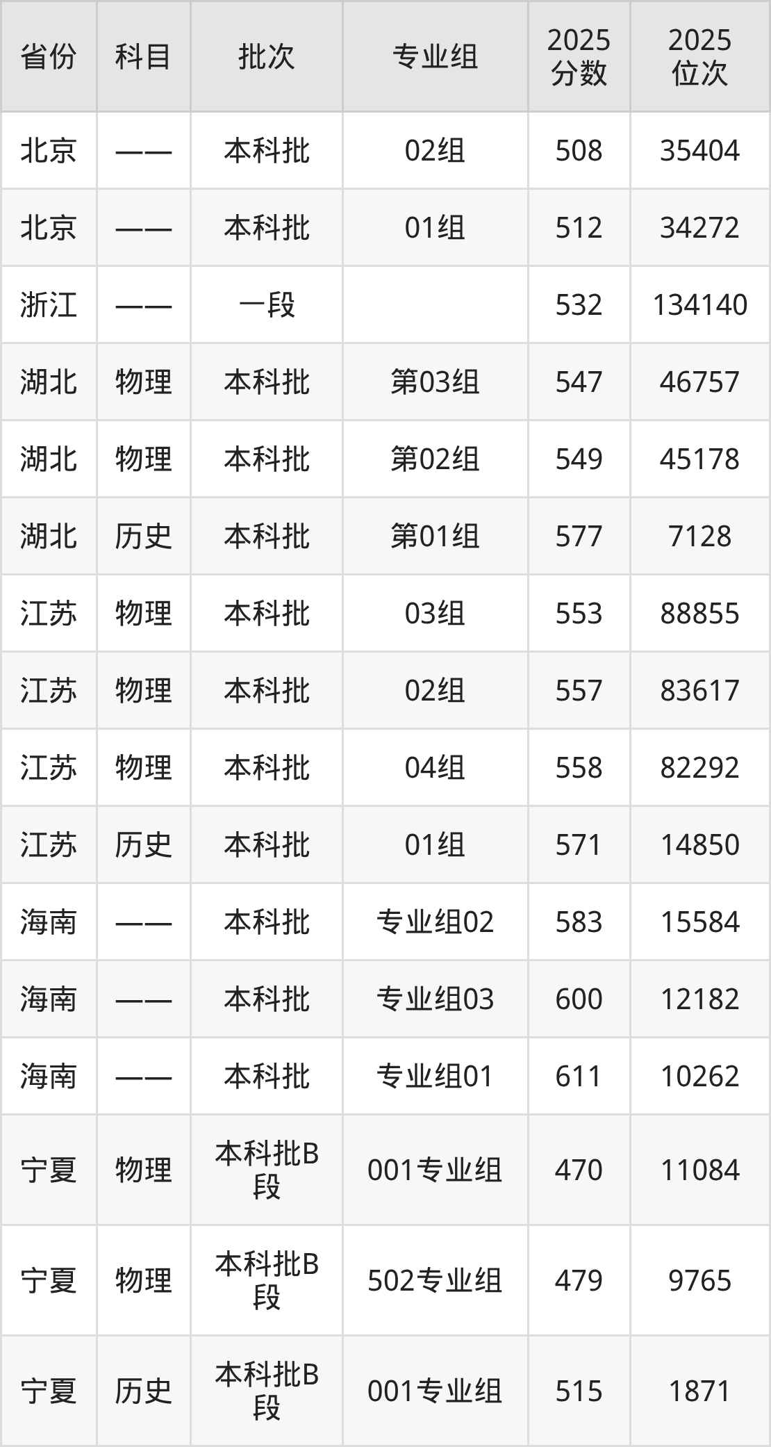 普通类本科物理类最低521分,本科历史类最低542分