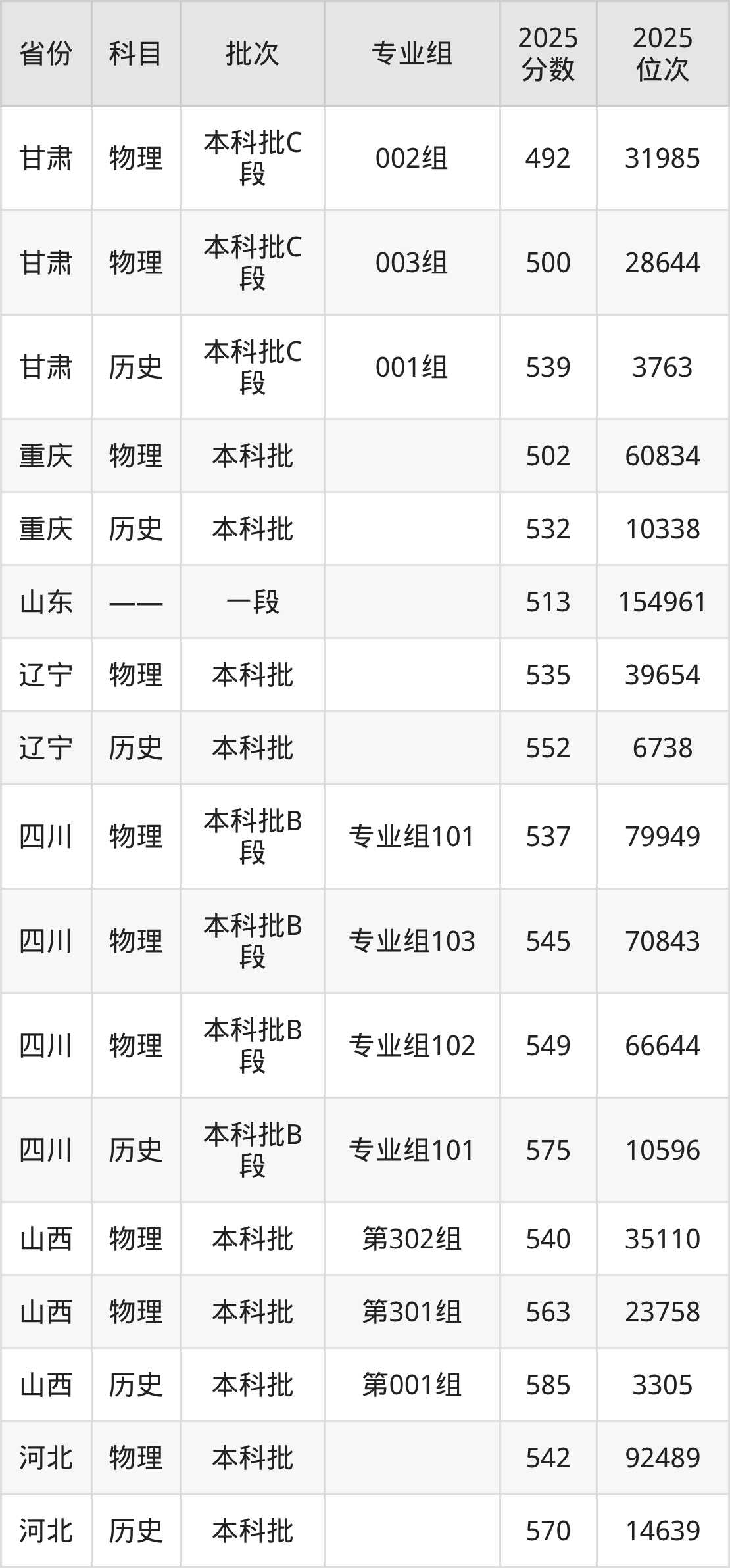 2025年在本科历史类进行招生,各专业组分数线详情如下: