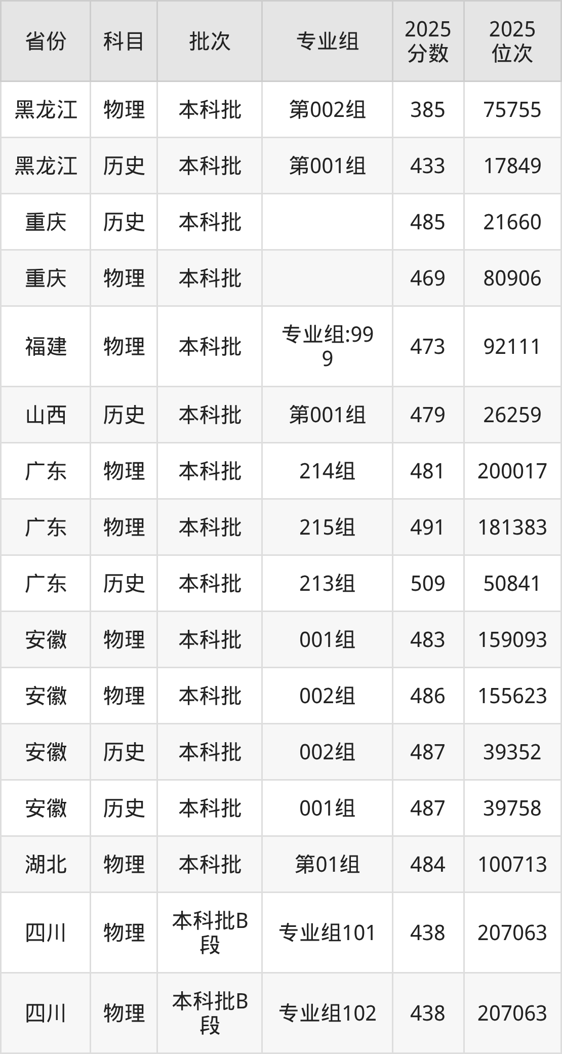 2025年在本科物理类进行招生,各专业组分数线详情如下: