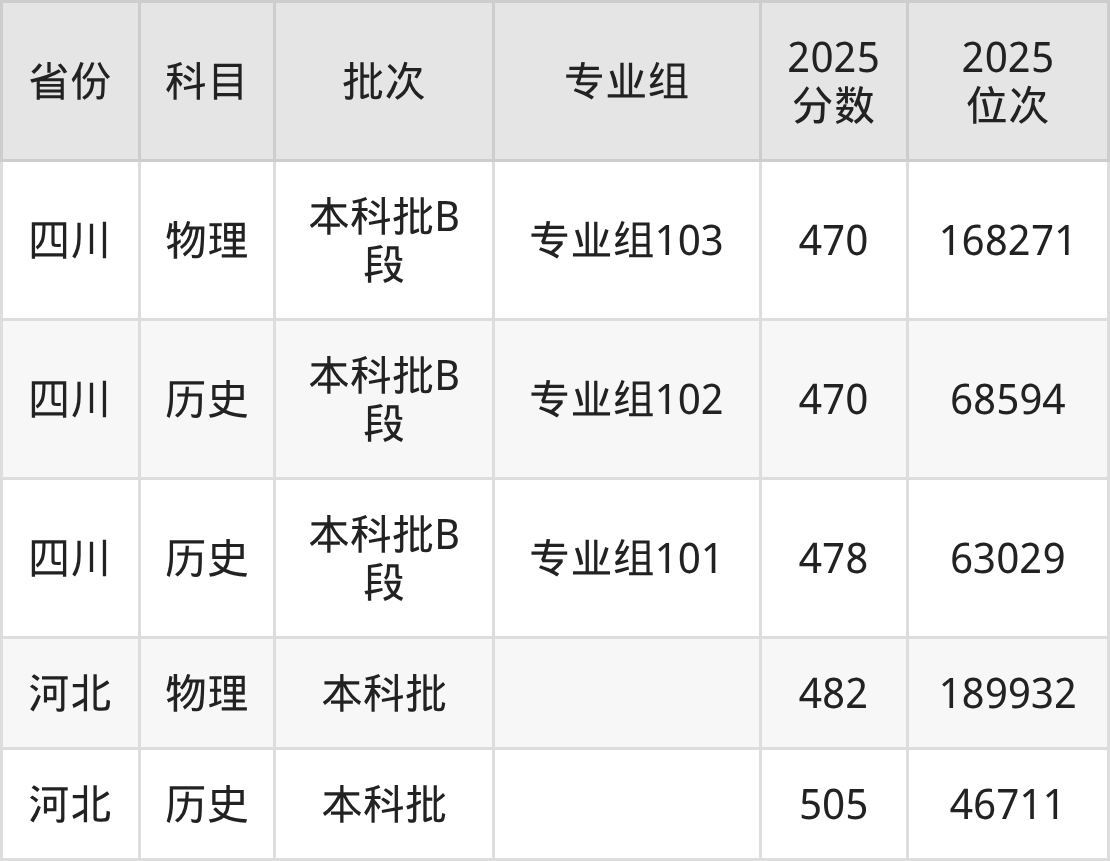 2025年投档录取最低分为469分,录取最低位次为80906名。