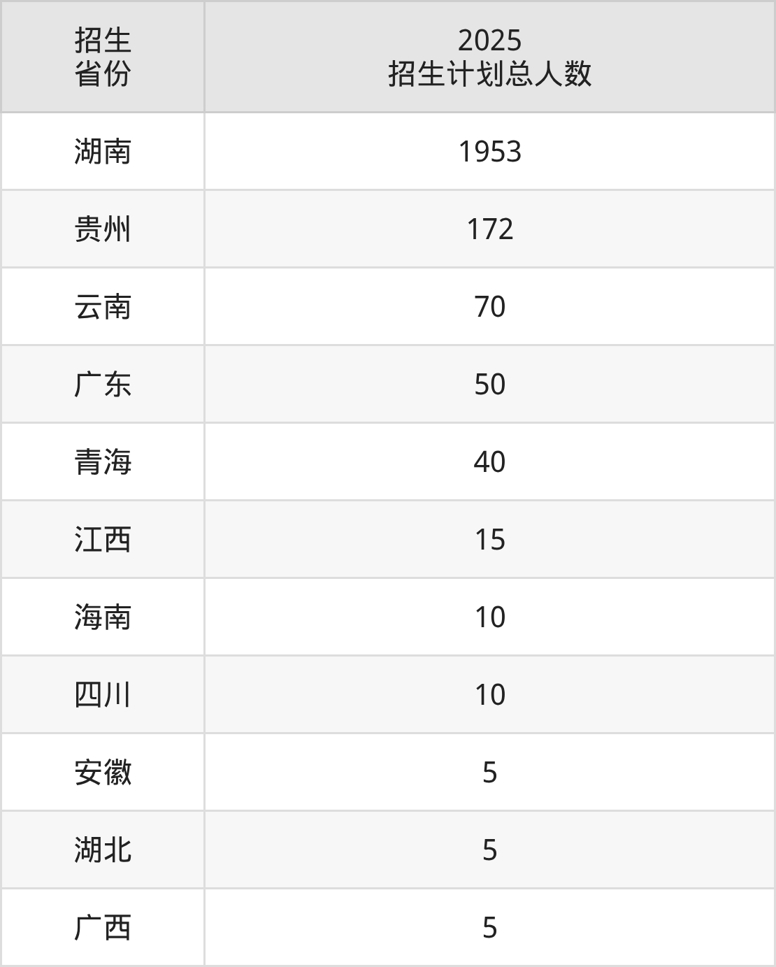 2025年娄底职业技术学院面向全国11个省市开展专科招生;招生专业共38个,招生人数共2335人。2025年在湖南省招生计划总人数是1953人,其中,娄底职业技术学院在湖南省招生人数最多的是护理。娄底职业技术学院在各省具体招生人数情况如下表。