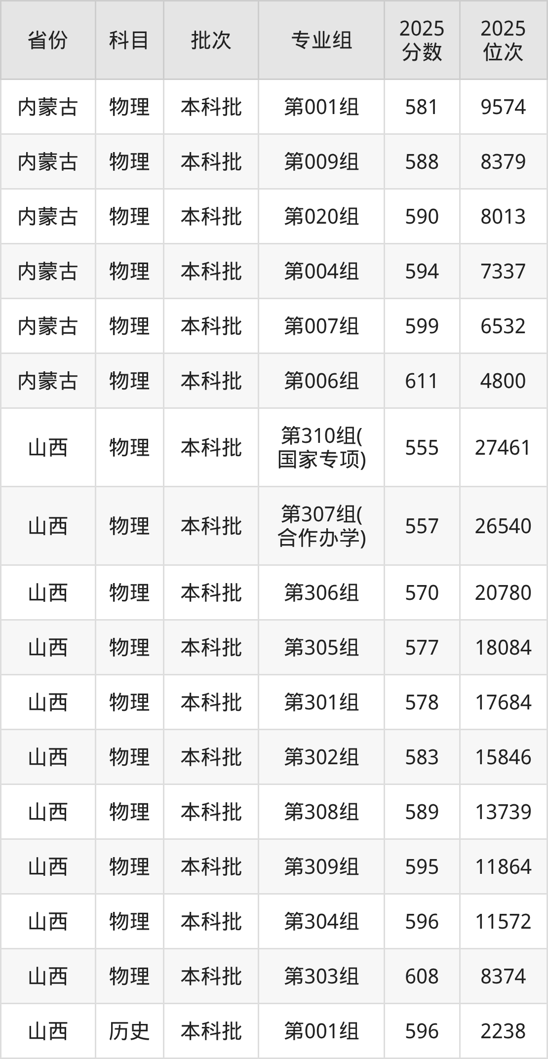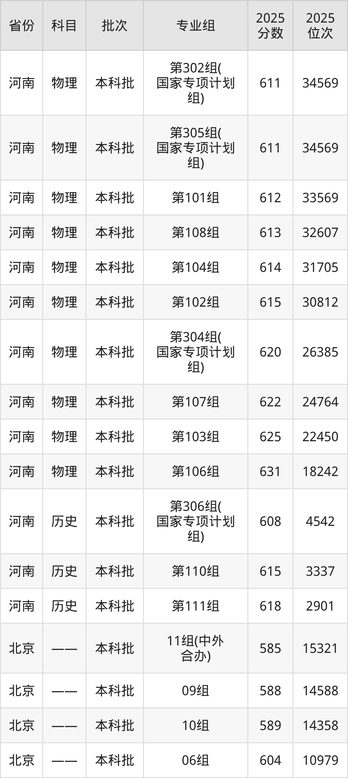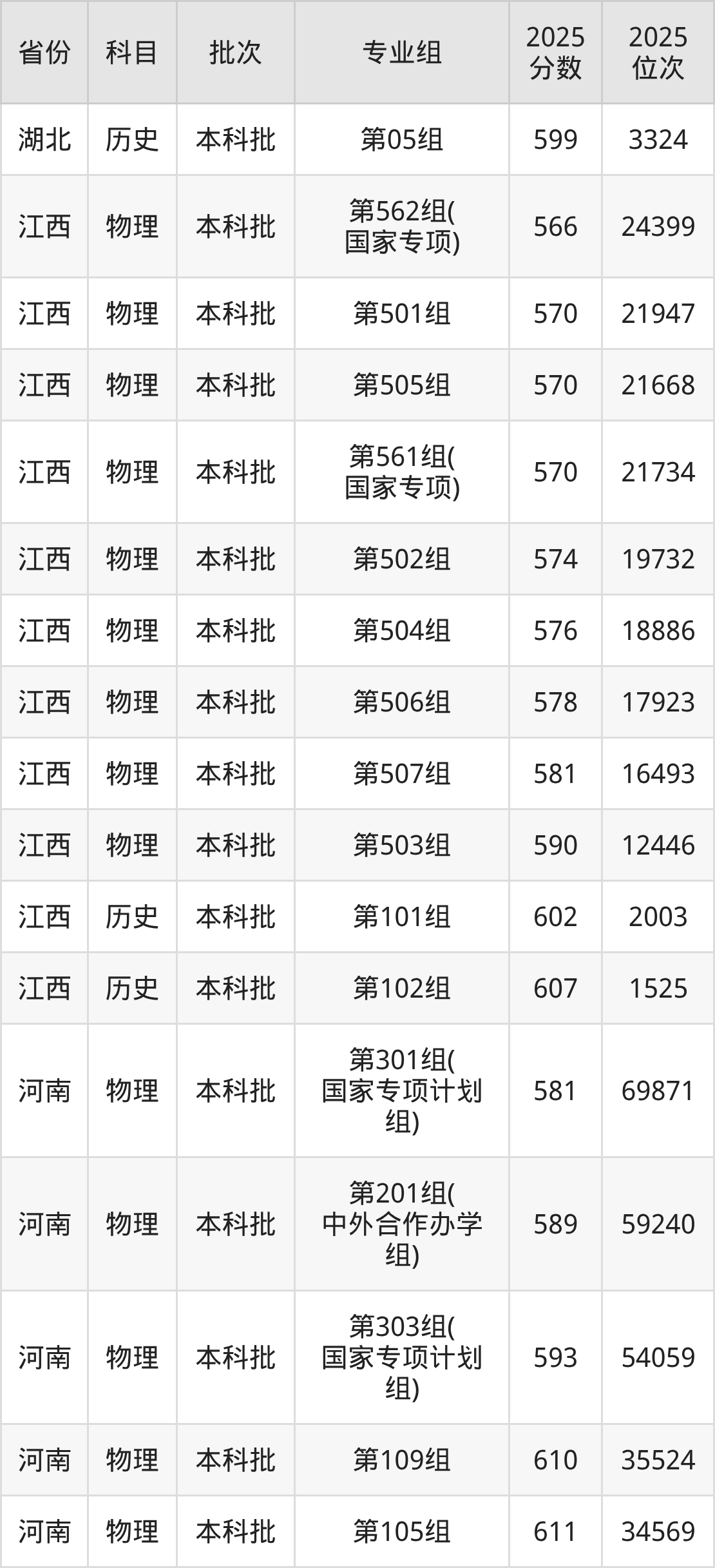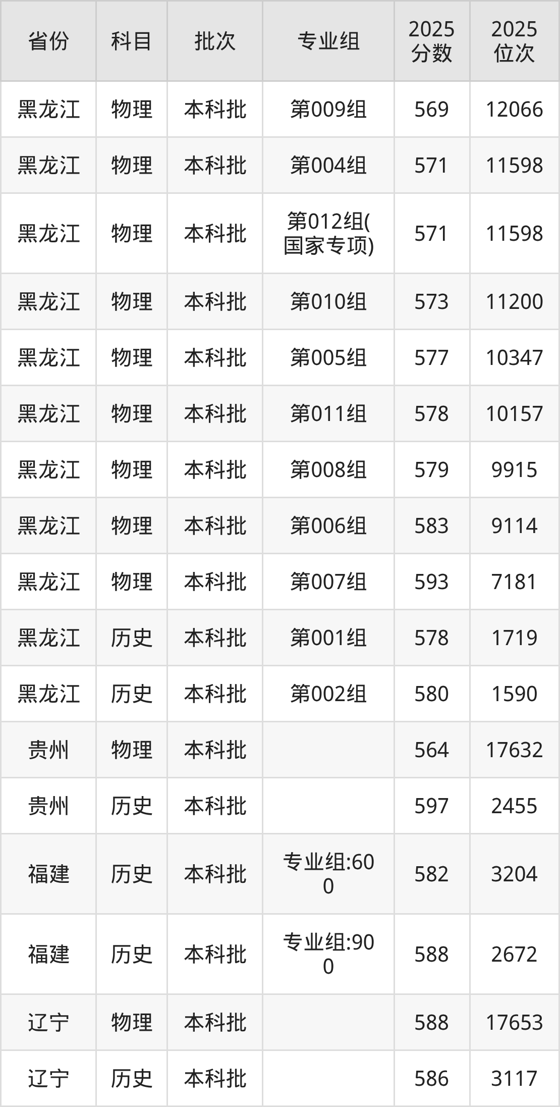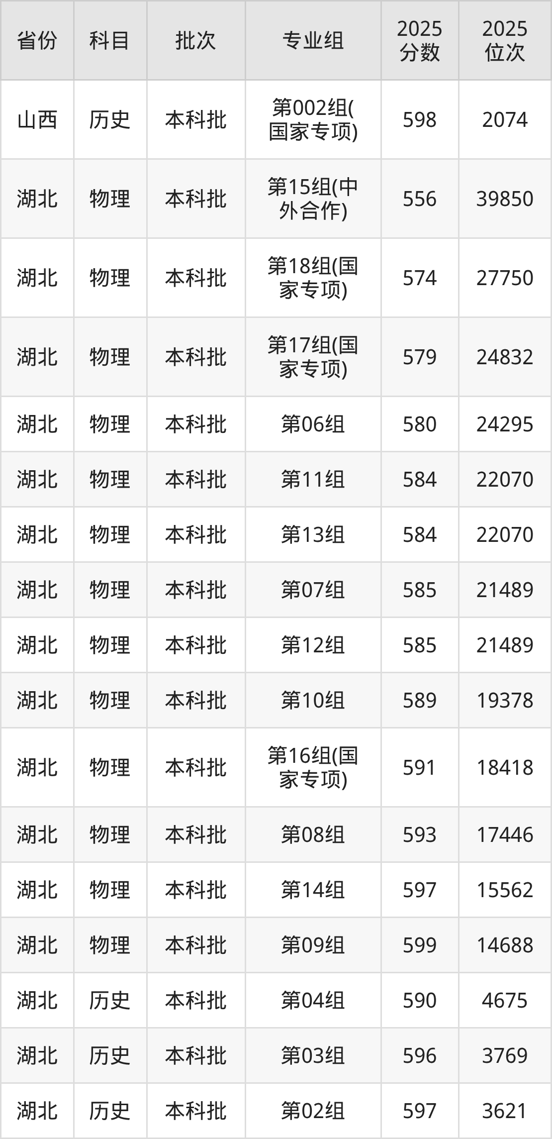 普通类本科历史类最低593分,本科物理类最低598分