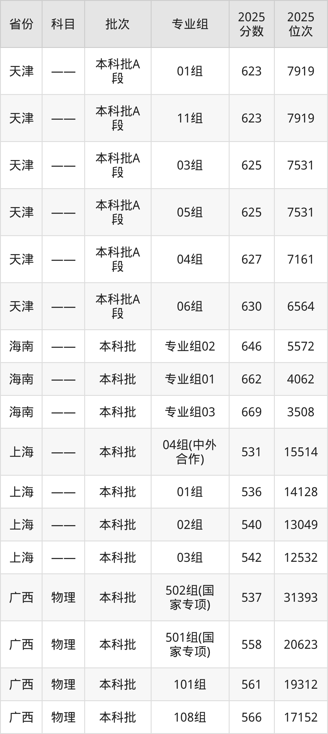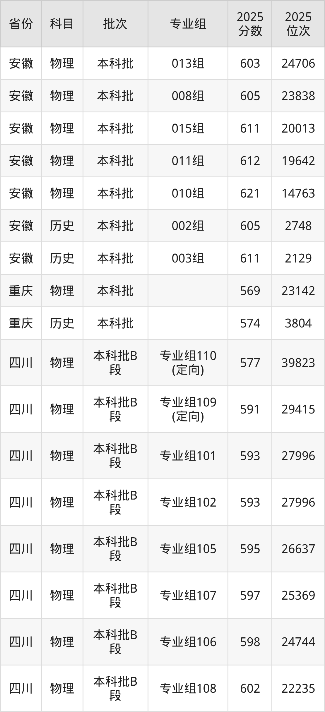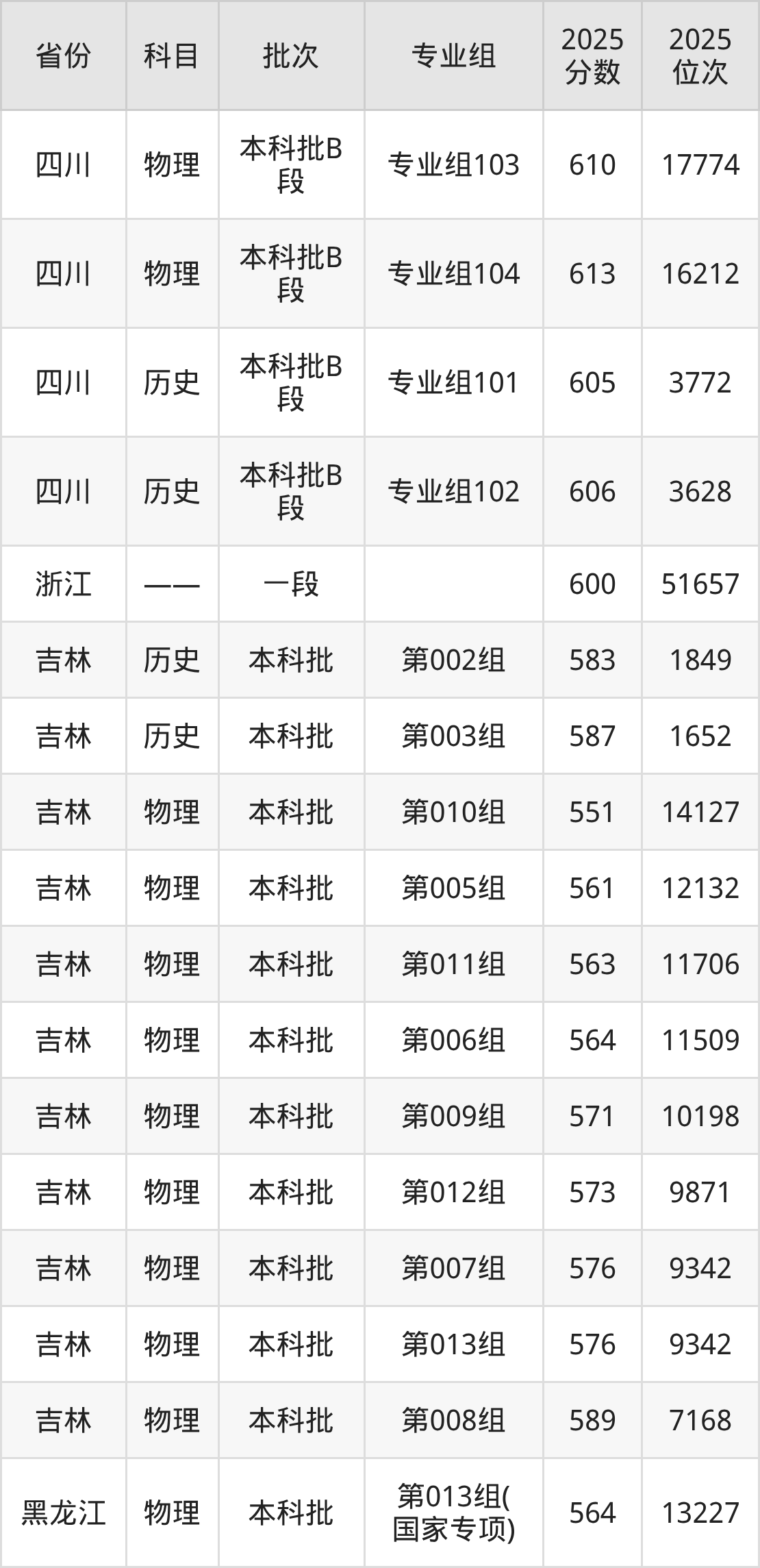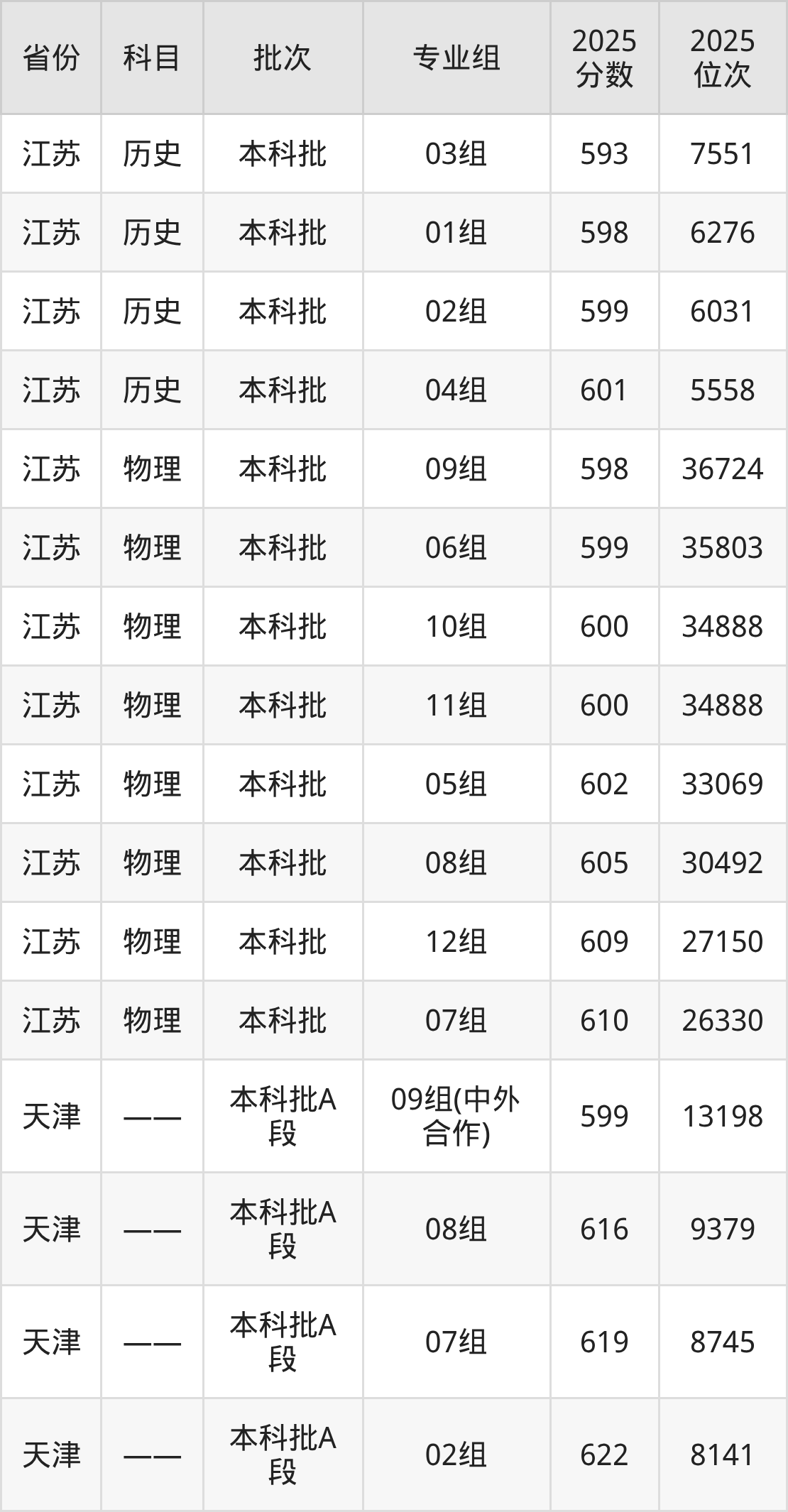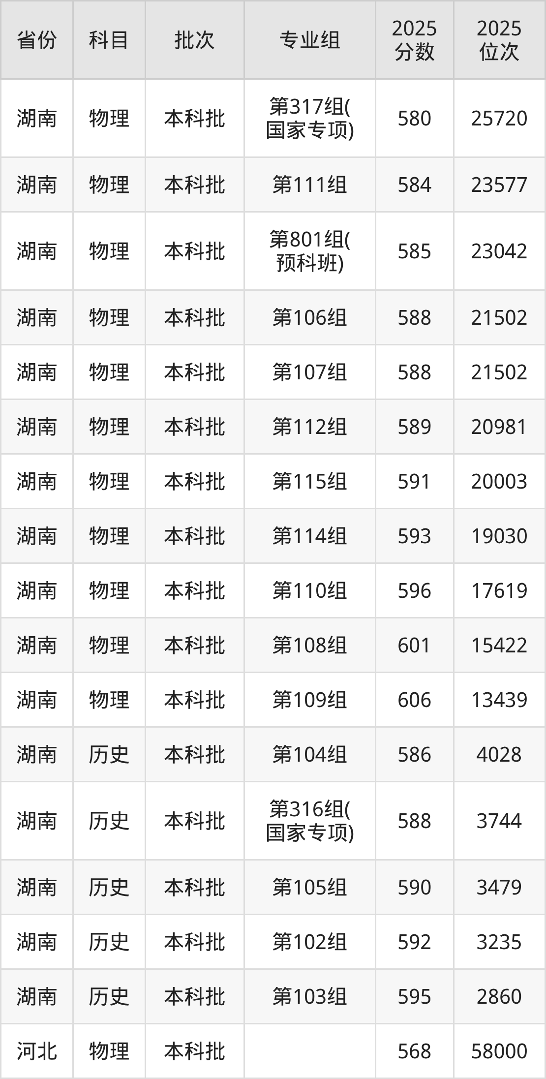 普通类本科历史类最低593分,本科物理类最低598分
