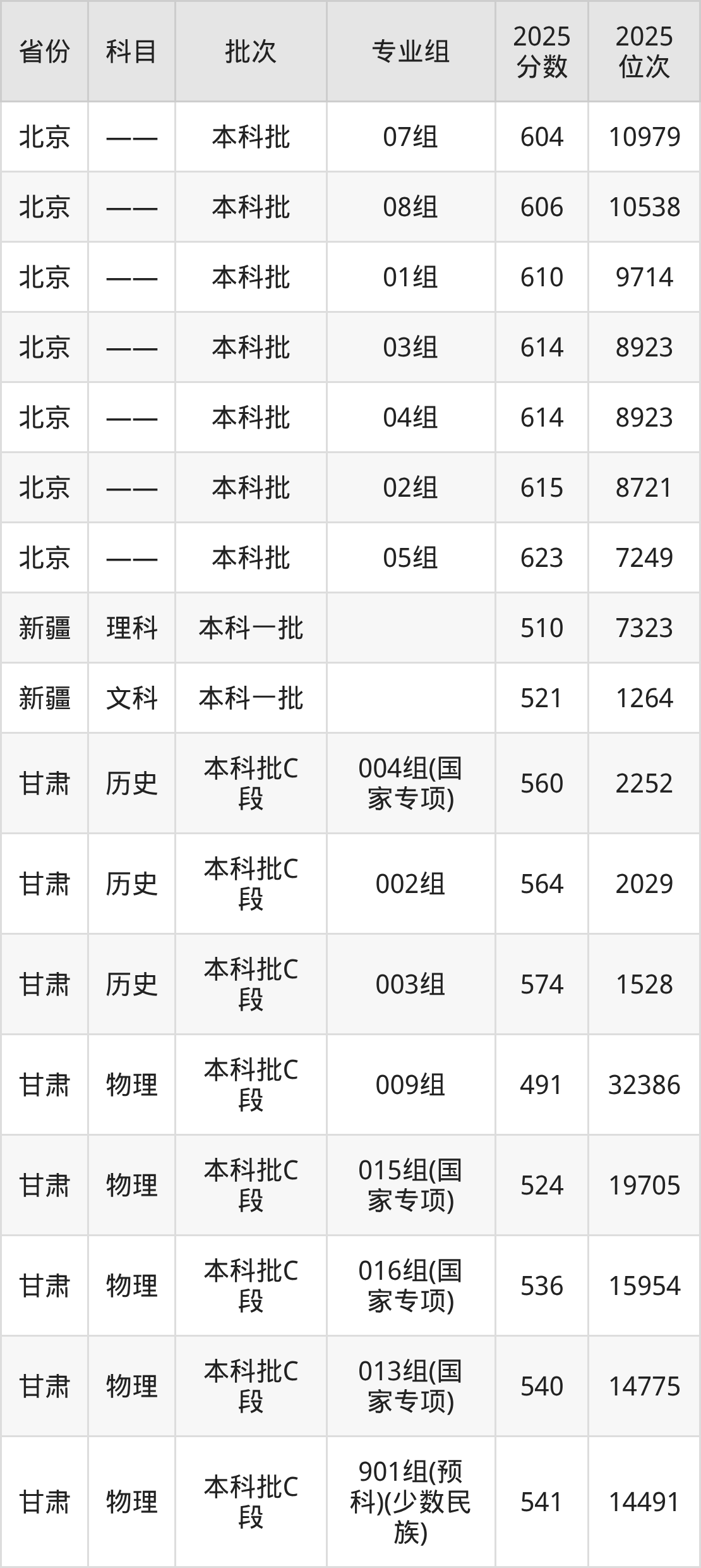 北京林业大学09组:2025年投档录取最低分为598分,录取最低位次为36724名。