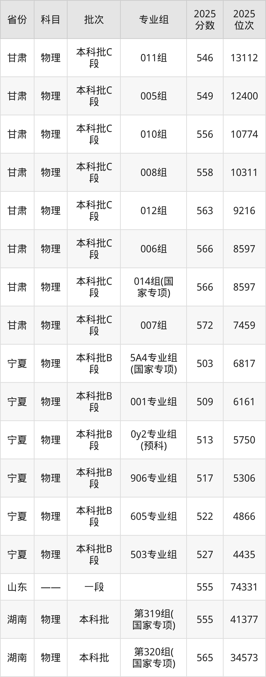 普通类本科物理类最低564分,本科历史类最低597分