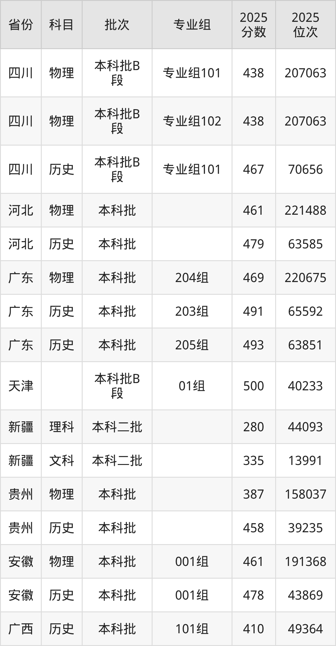 普通类本科物理类最低438分,本科历史类最低467分