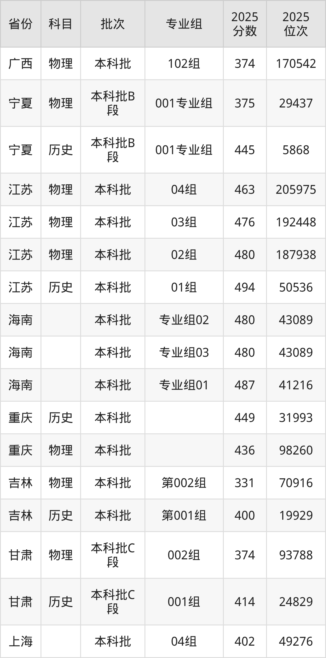 普通类本科物理类最低387分,本科历史类最低458分