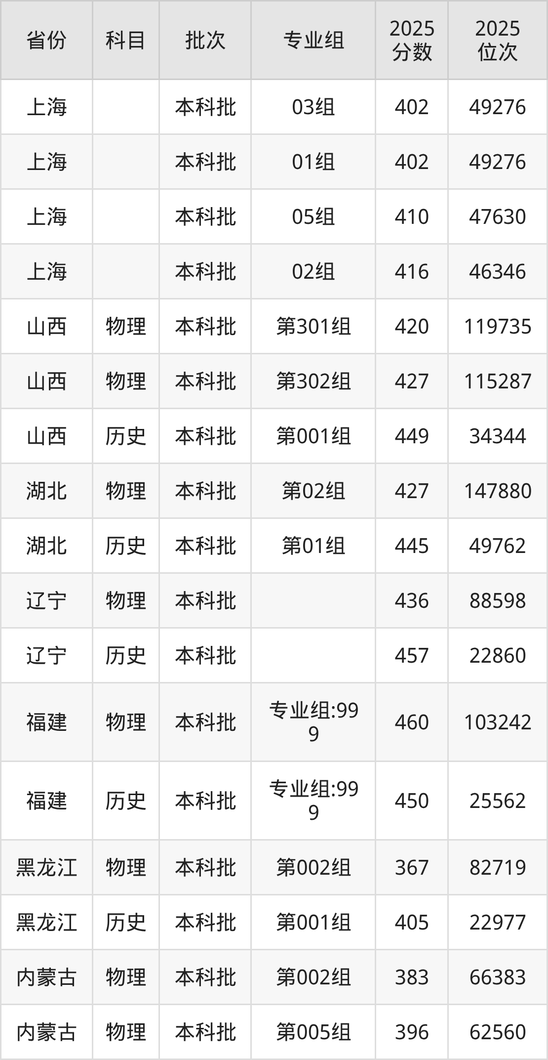上海外国语大学贤达经济人文学院001组:2025年投档录取最低分为461分,录取最低位次为191368名。