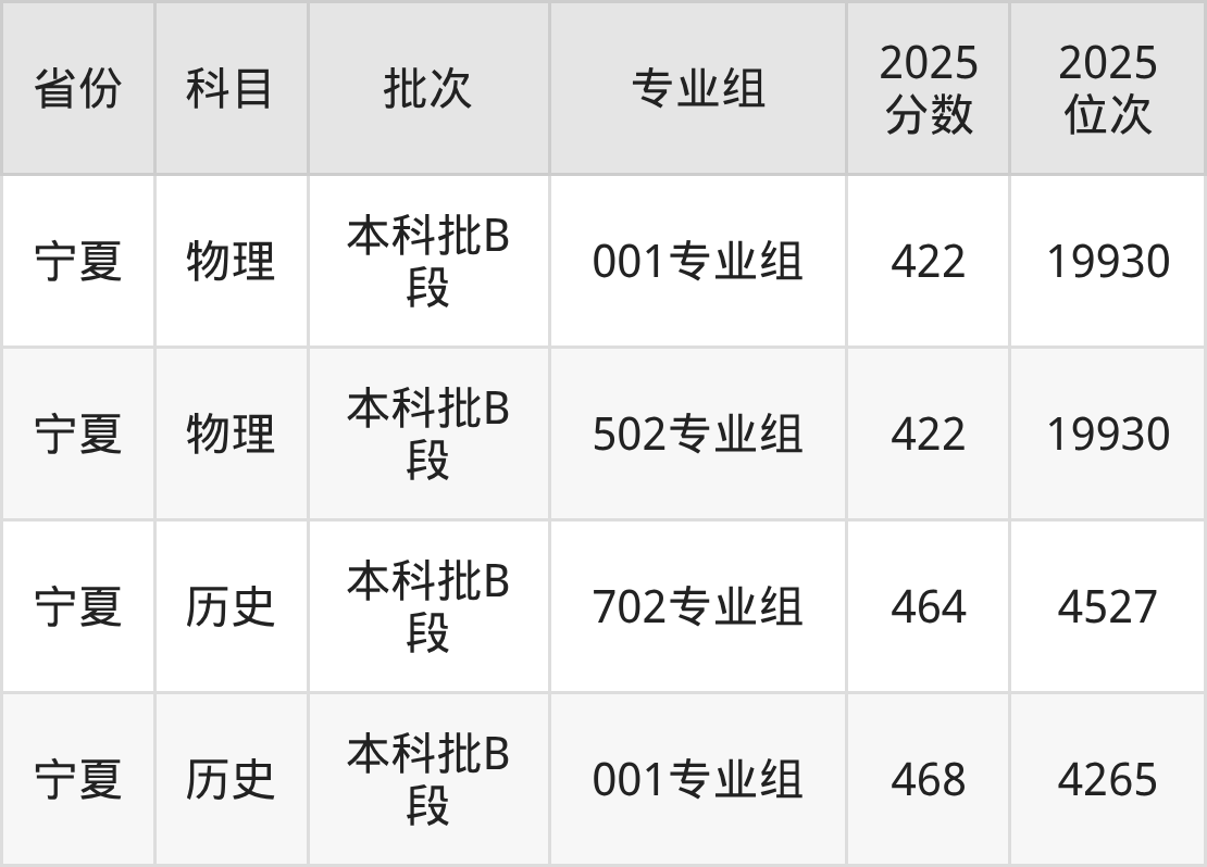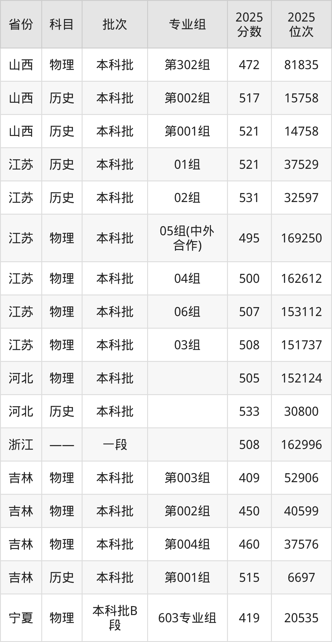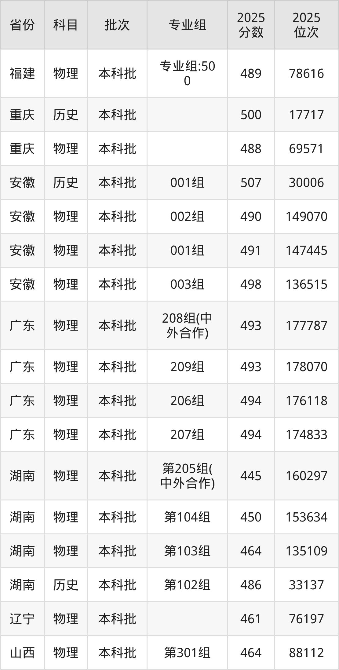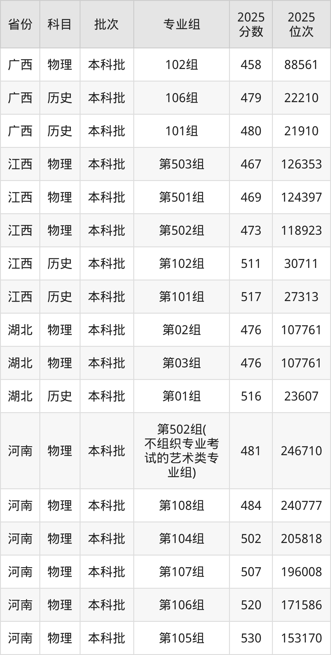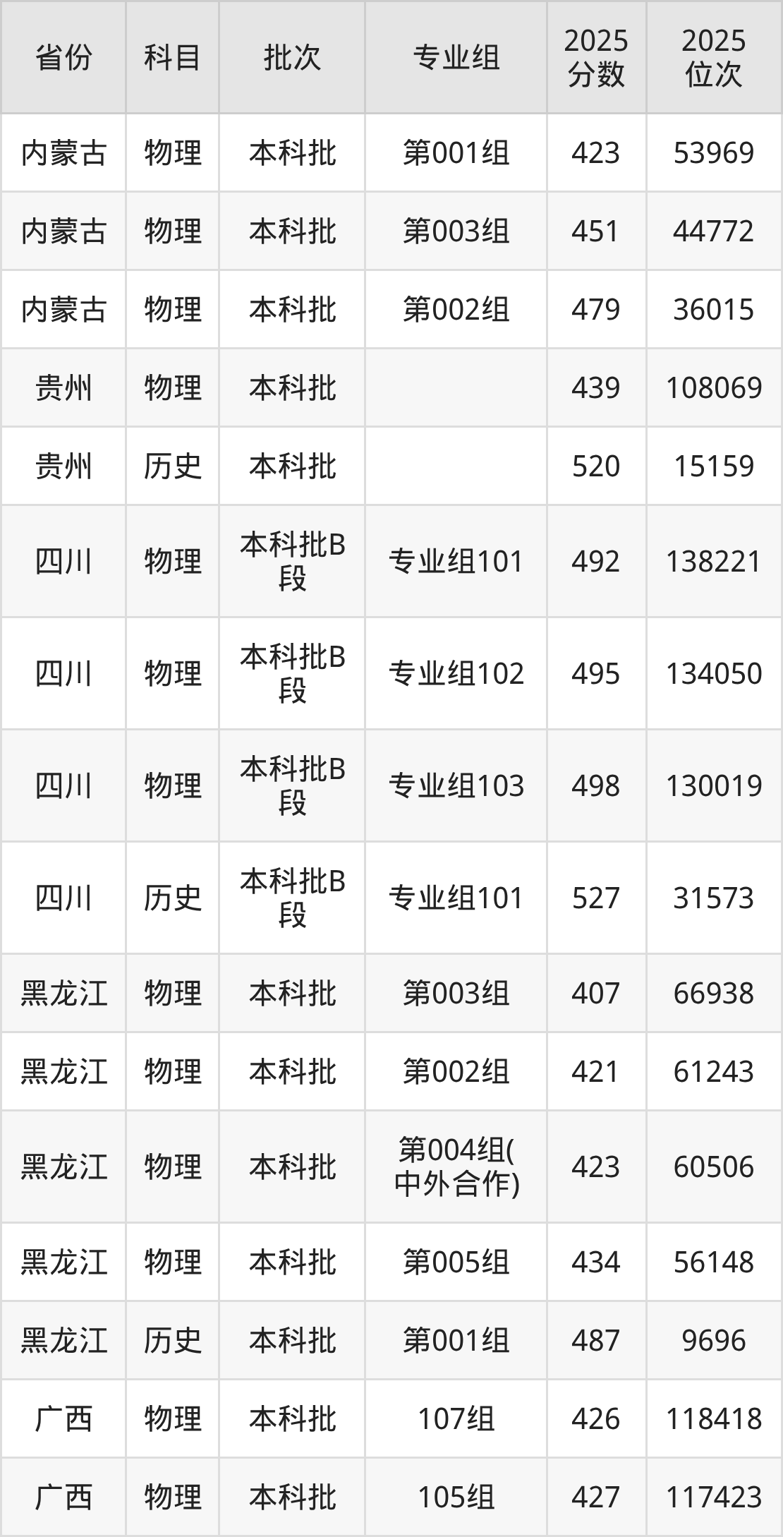 2025年在本科理科进行招生,各专业组分数线详情如下: