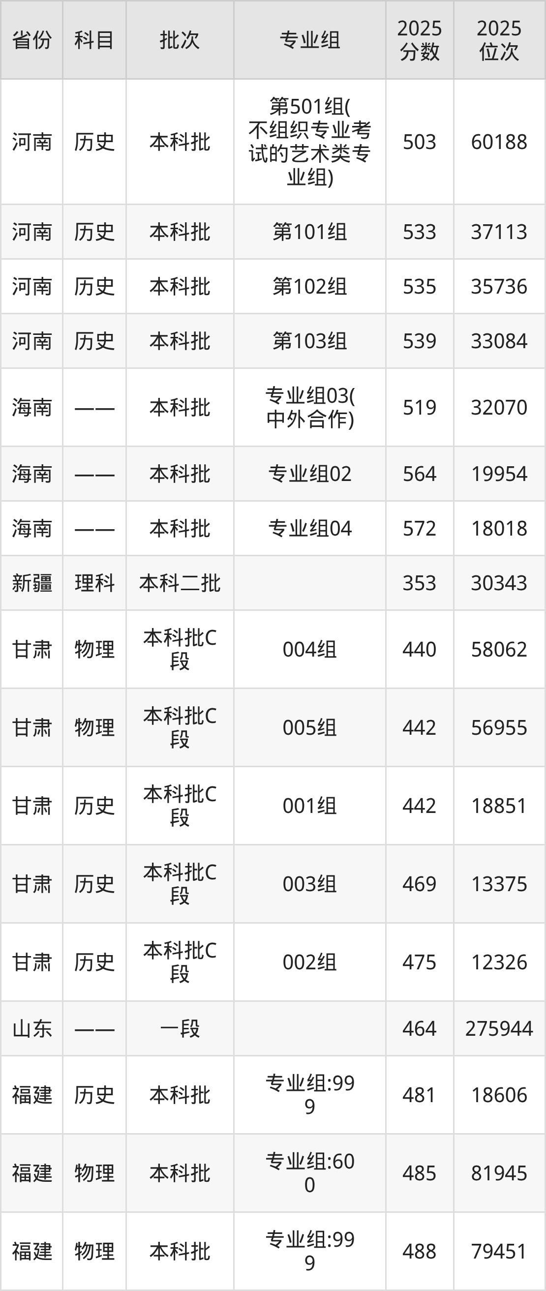 黄淮学院003专业组:2025年投档录取最低分为469分,录取最低位次为13375名。