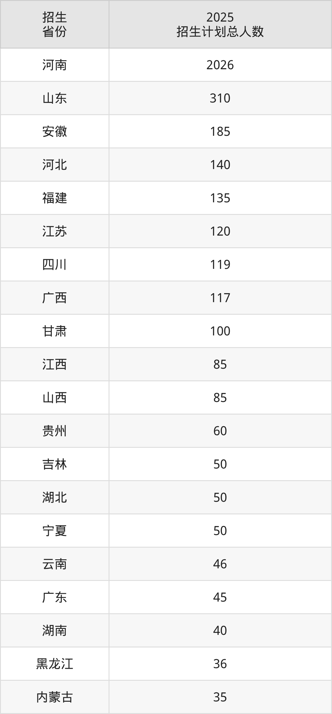 2025年黄淮学院面向全国26个省市开展本科招生;招生专业共49个,招生人数共3982人。2025年在河南省招生计划总人数是2026人,其中,黄淮学院在河南省招生人数最多的是护理学。黄淮学院在各省具体招生人数情况如下表。