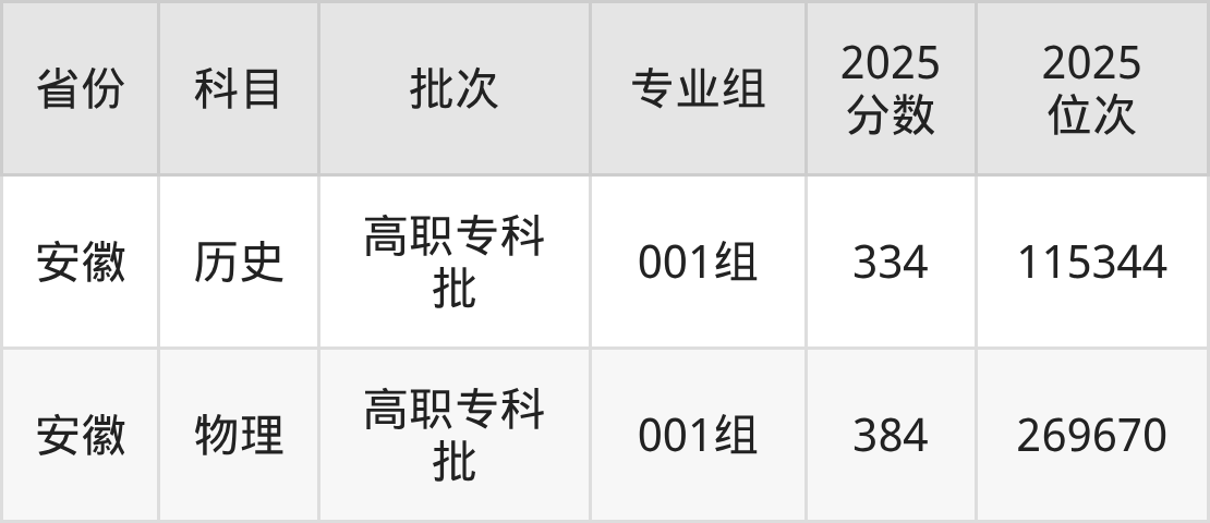 济宁职业技术学院001组:2025年投档录取最低分为334分,录取最低位次为115344名。