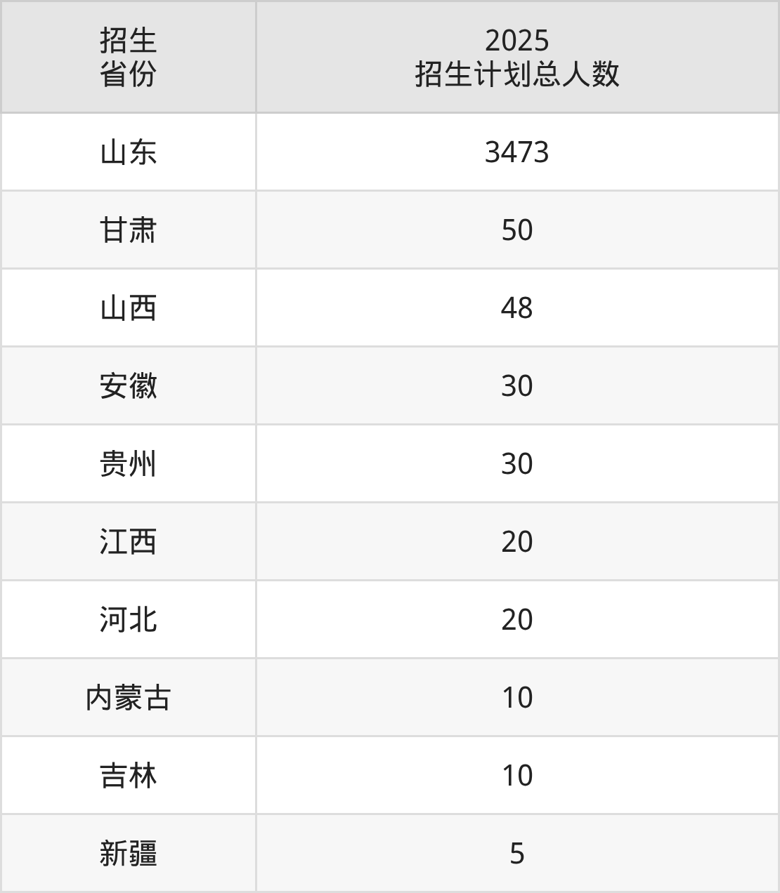 2025年济宁职业技术学院面向全国10个省市开展专科招生;招生专业共54个,招生人数共3696人。2025年在山东省招生计划总人数是3473人,其中,济宁职业技术学院在山东省招生人数最多的是眼视光技术。济宁职业技术学院在各省具体招生人数情况如下表。