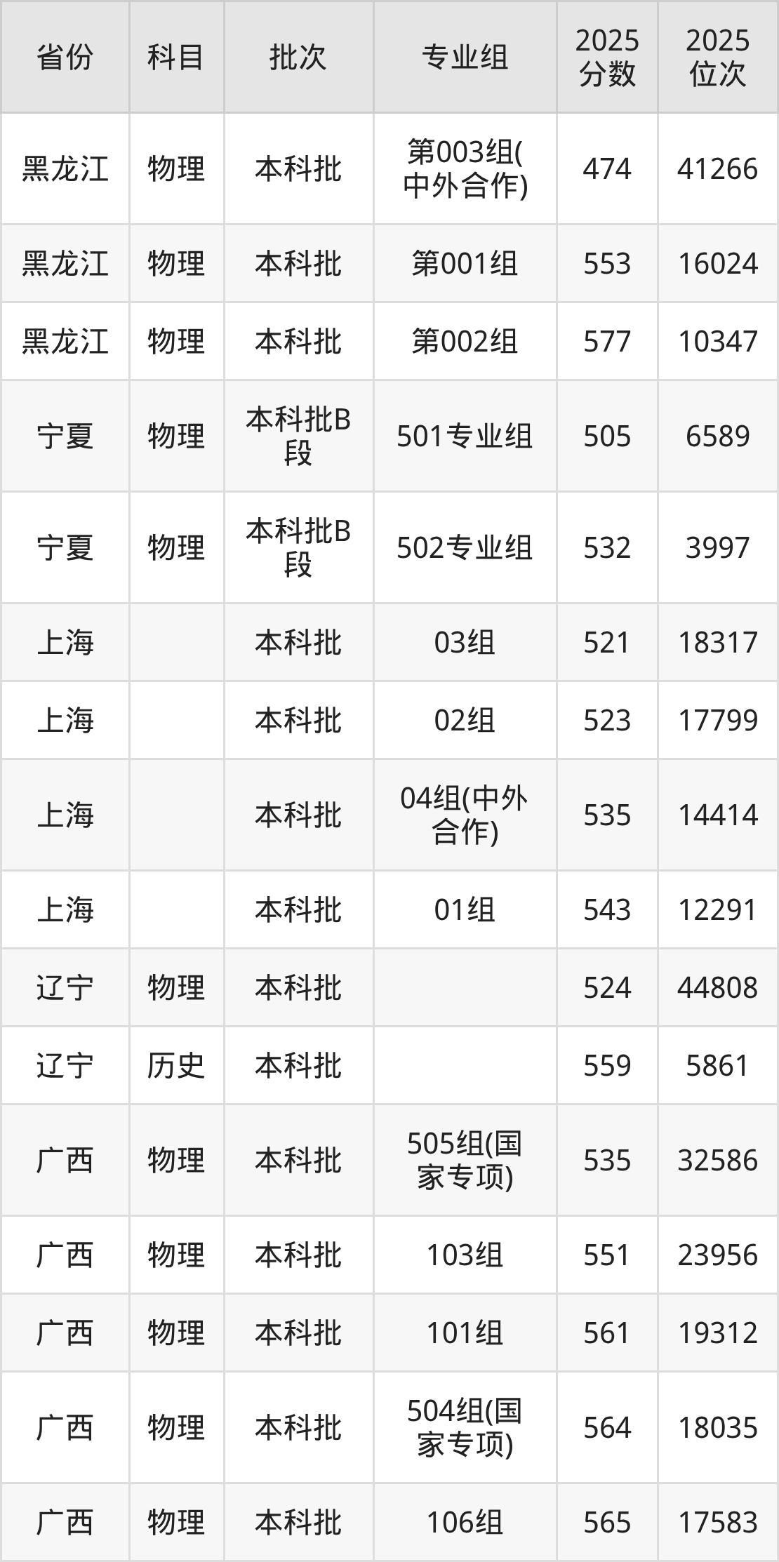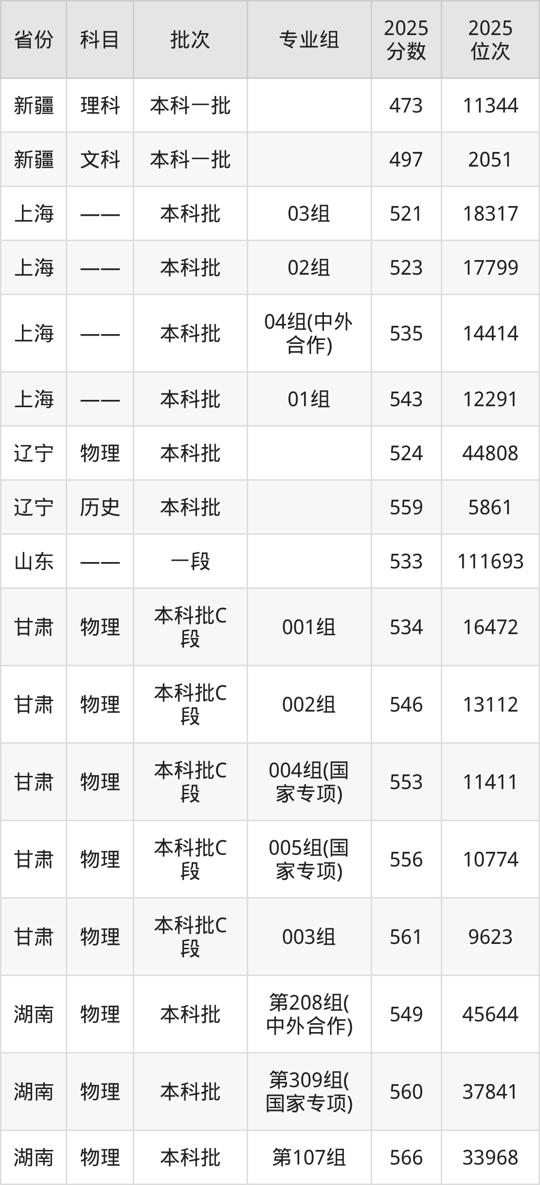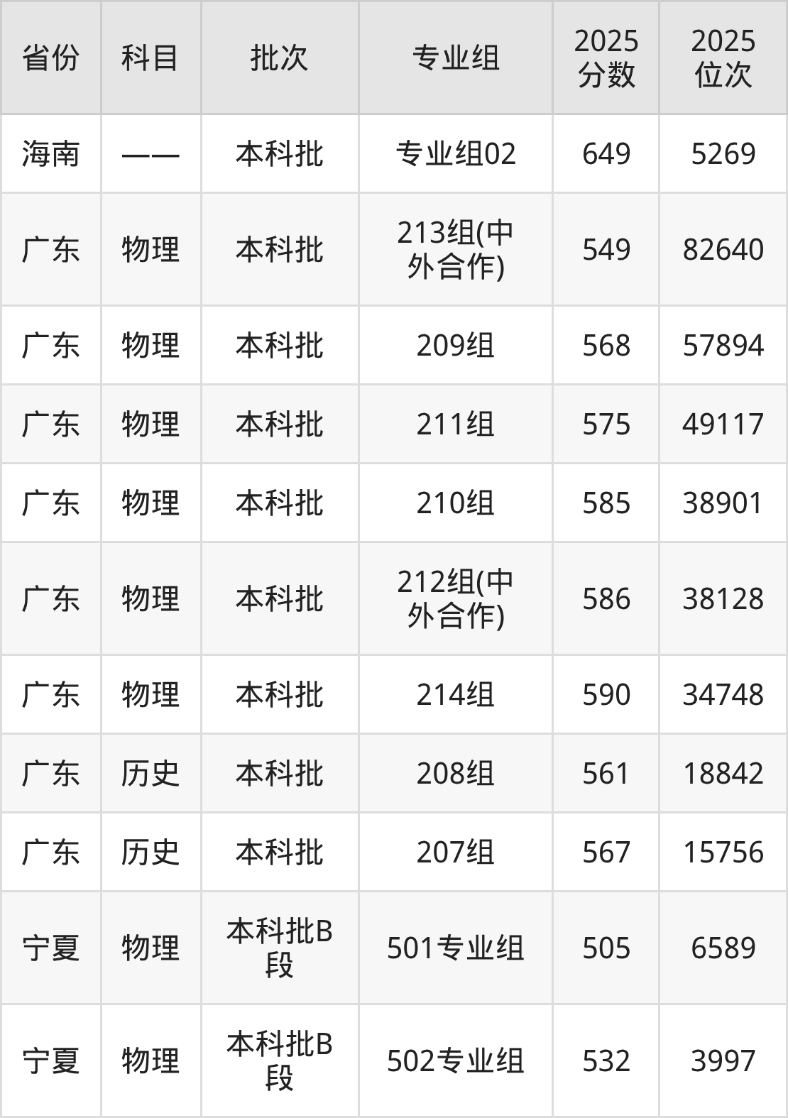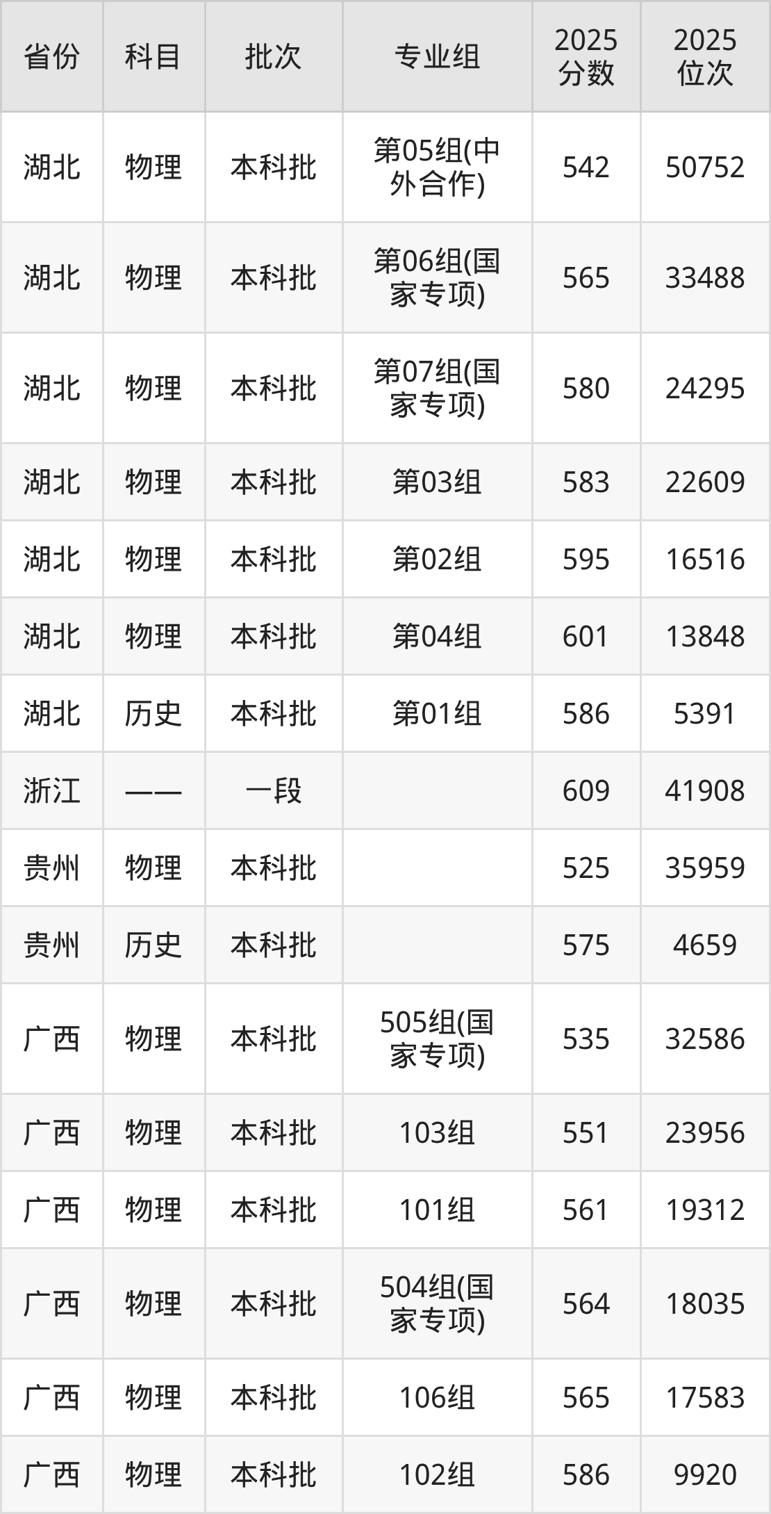 2025年在本科物理类进行招生,各专业组分数线详情如下: