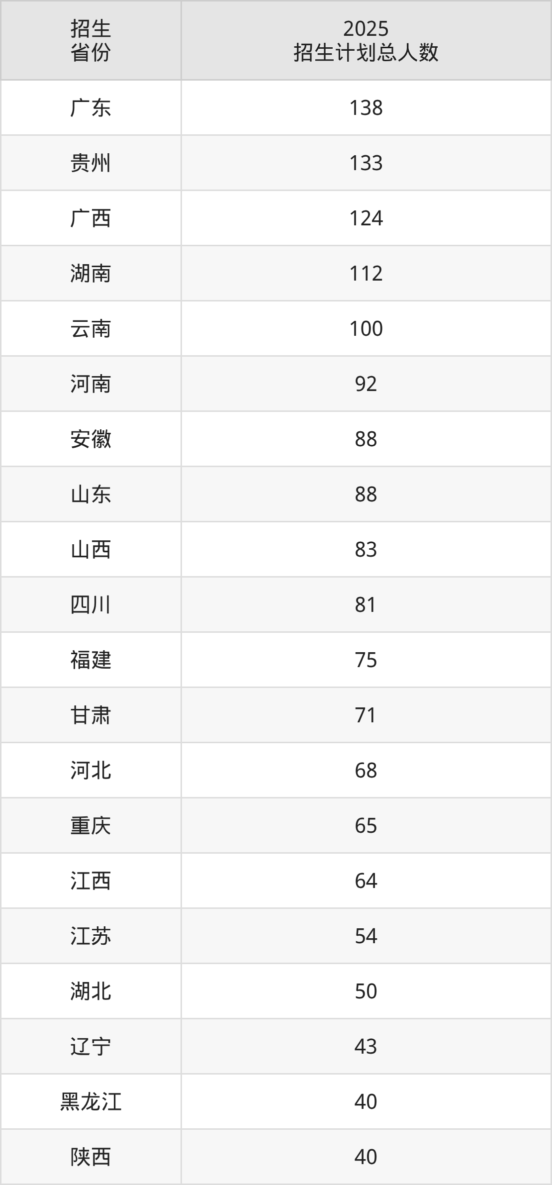 2025年浙江工业大学面向全国29个省市开展本科招生;招生专业共36个,招生人数共1790人。浙江工业大学在各省具体招生人数情况如下表。