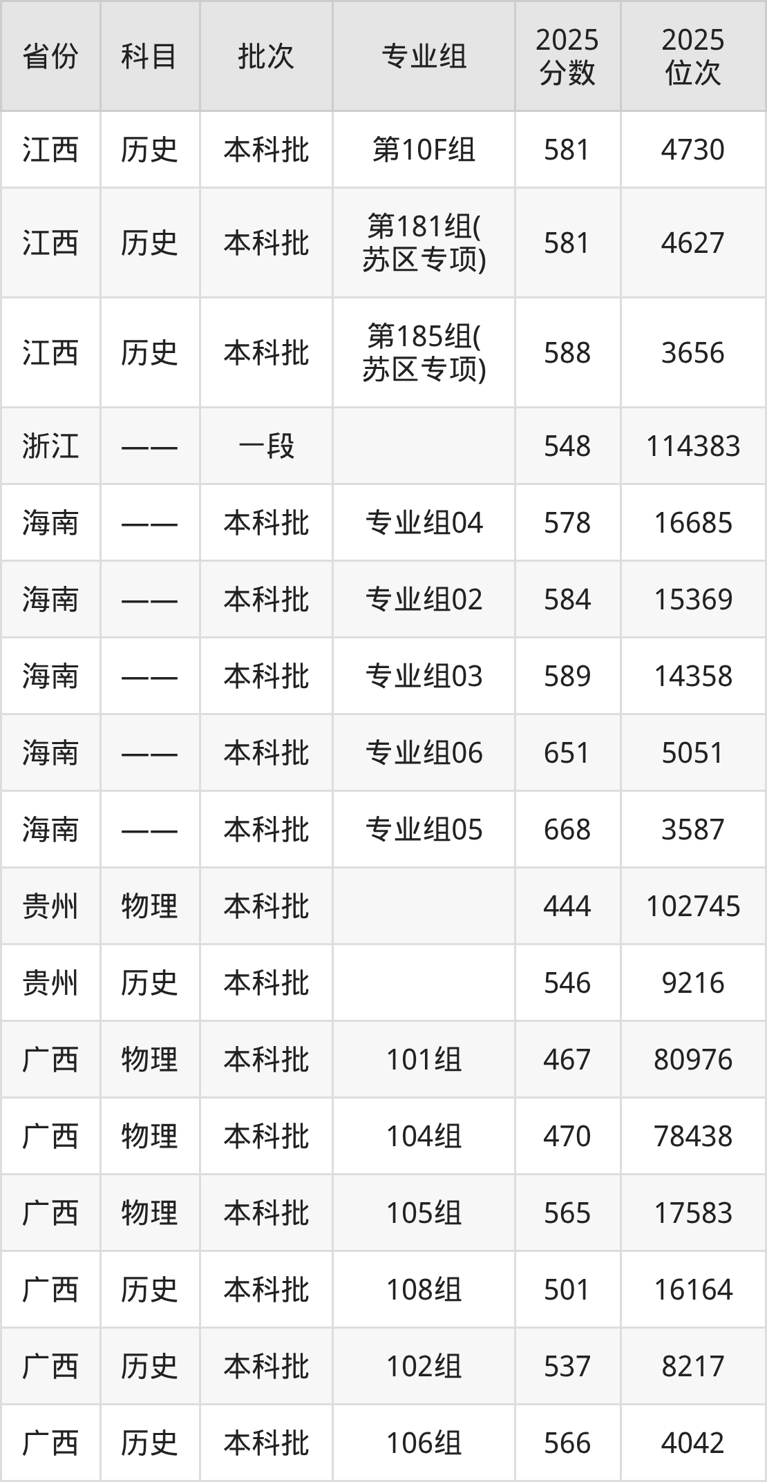 江西师范大学第002组:2025年投档录取最低分为518分,录取最低位次为6103名。