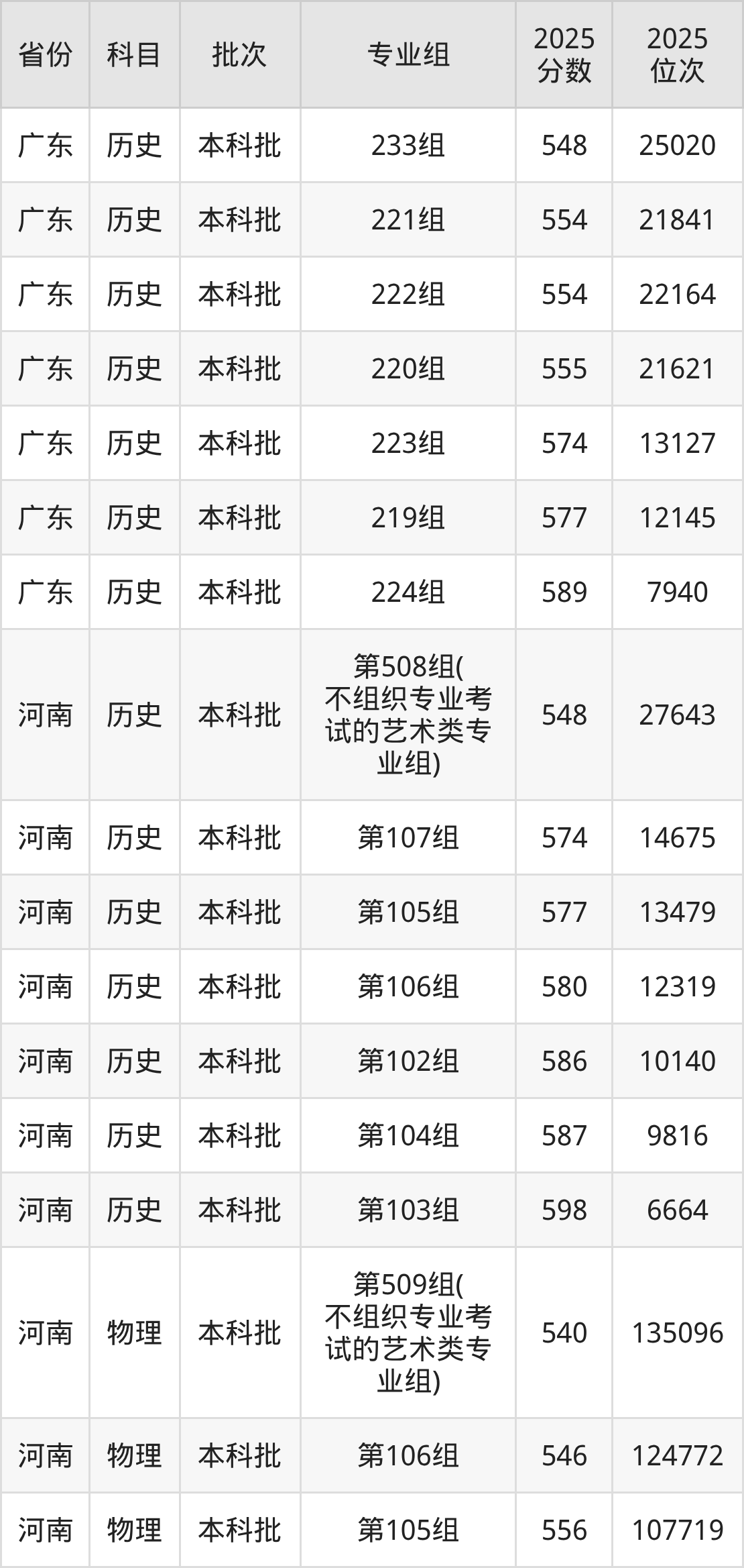 普通类本科物理类最低540分,本科历史类最低548分