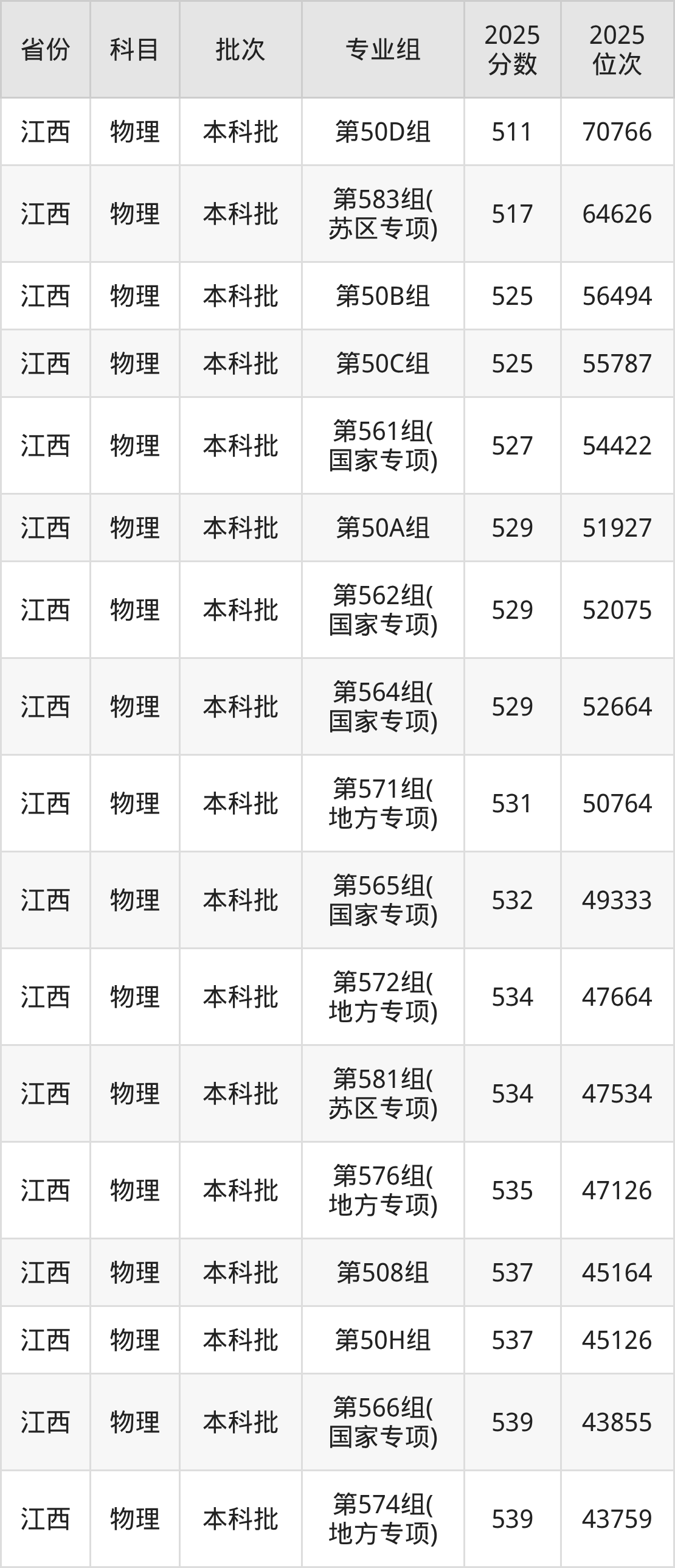 江西师范大学006组:2025年投档录取最低分为550分,录取最低位次为70511名。