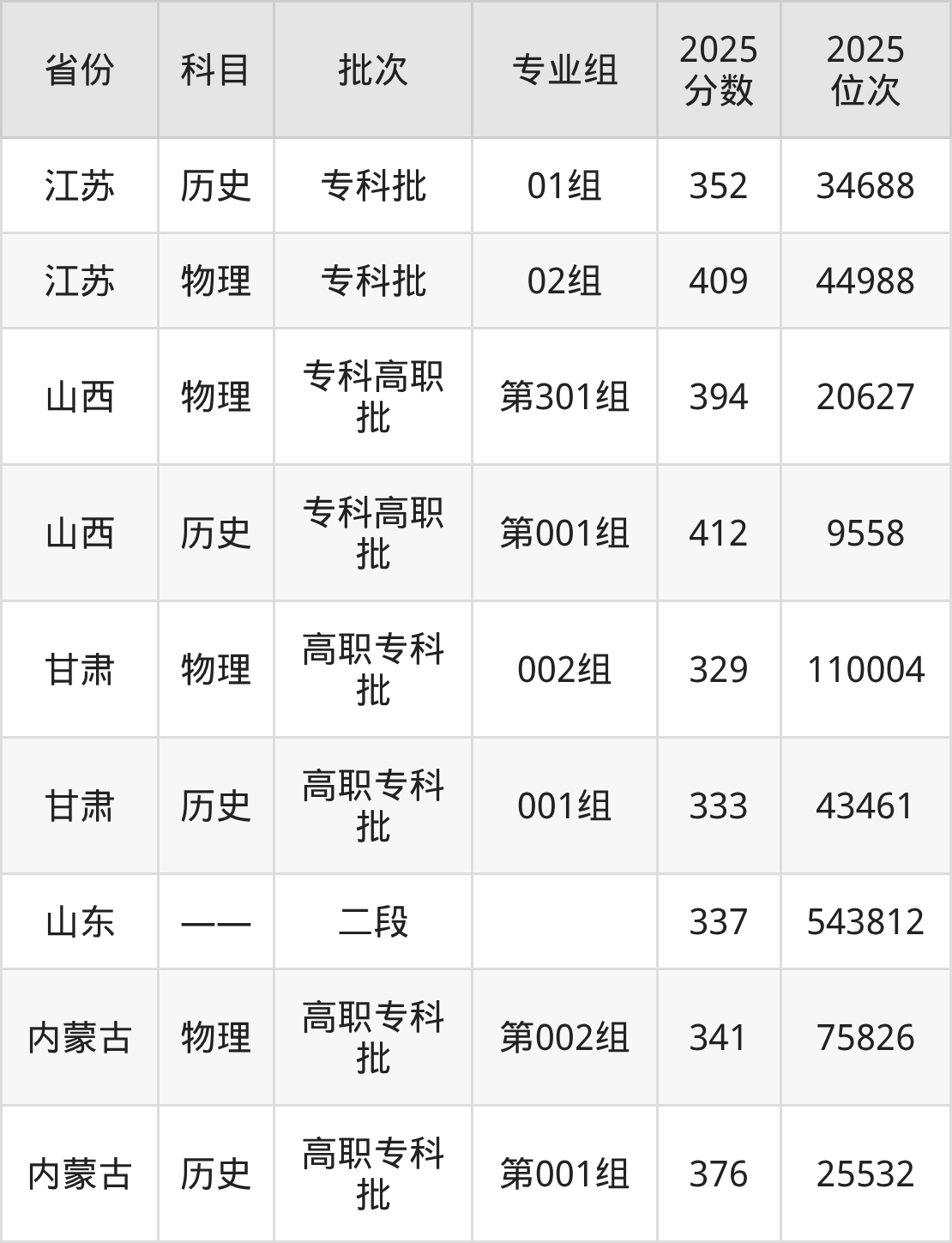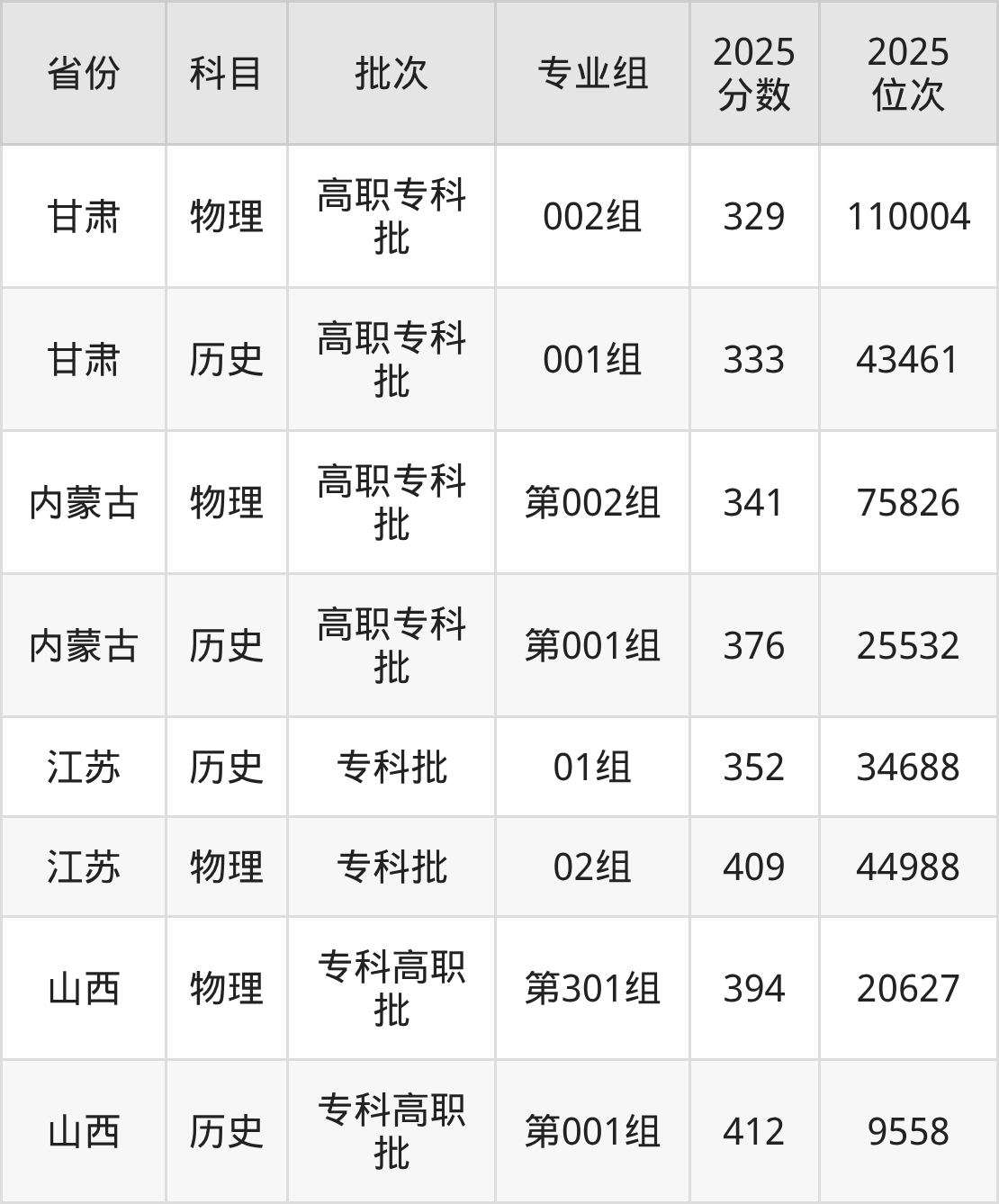 郑州电力职业技术学院002专业组:2025年投档录取最低分为329分,录取最低位次为110004名。