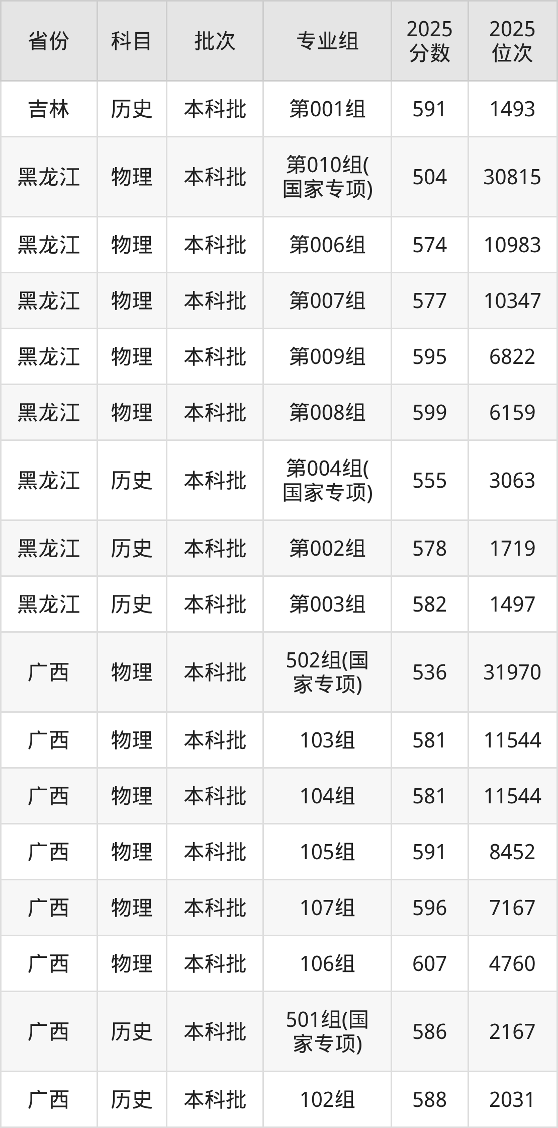 暨南大学004专业组(国家专项计划):2025年投档录取最低分为536分,录取最低位次为4038名。