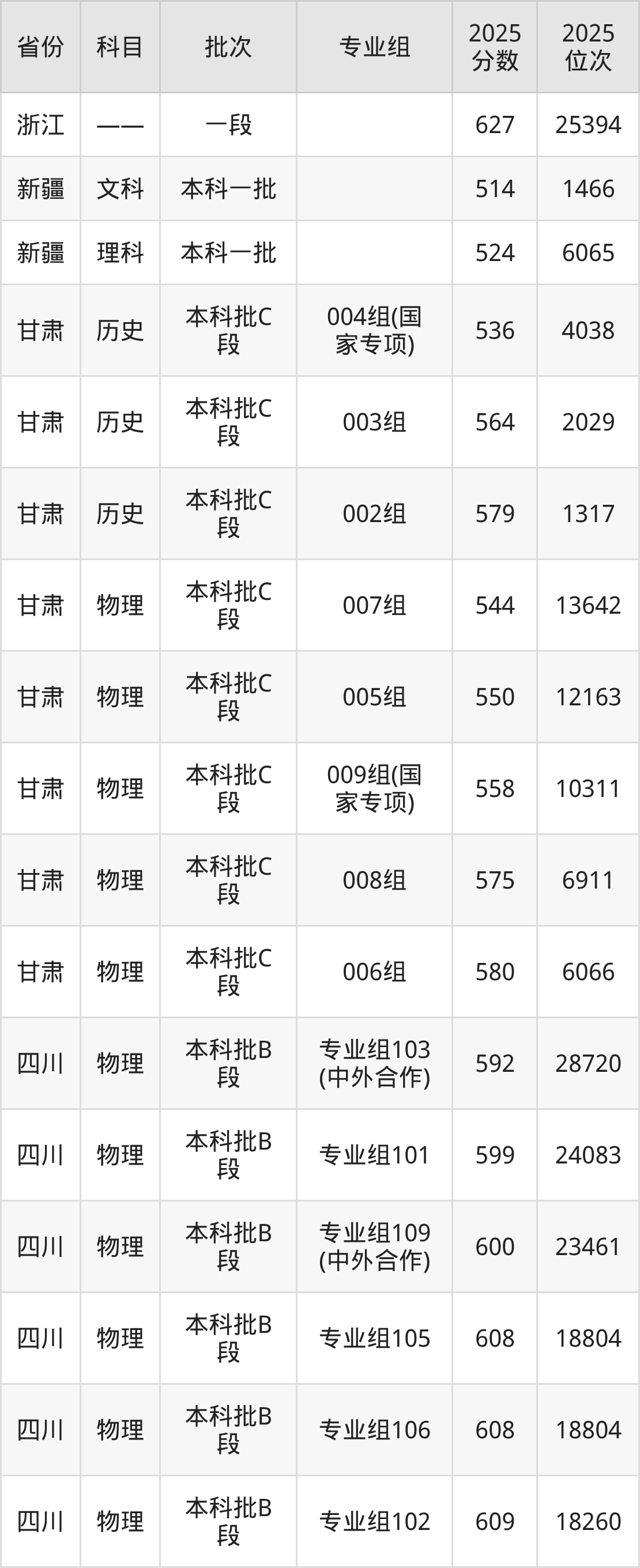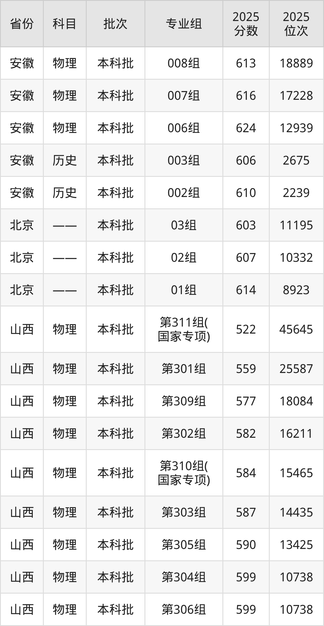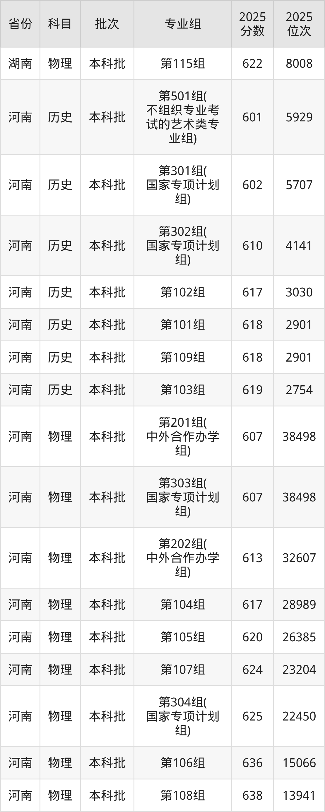 暨南大学第303组(国家专项计划组):2025年投档录取最低分为607分,录取最低位次为38498名。