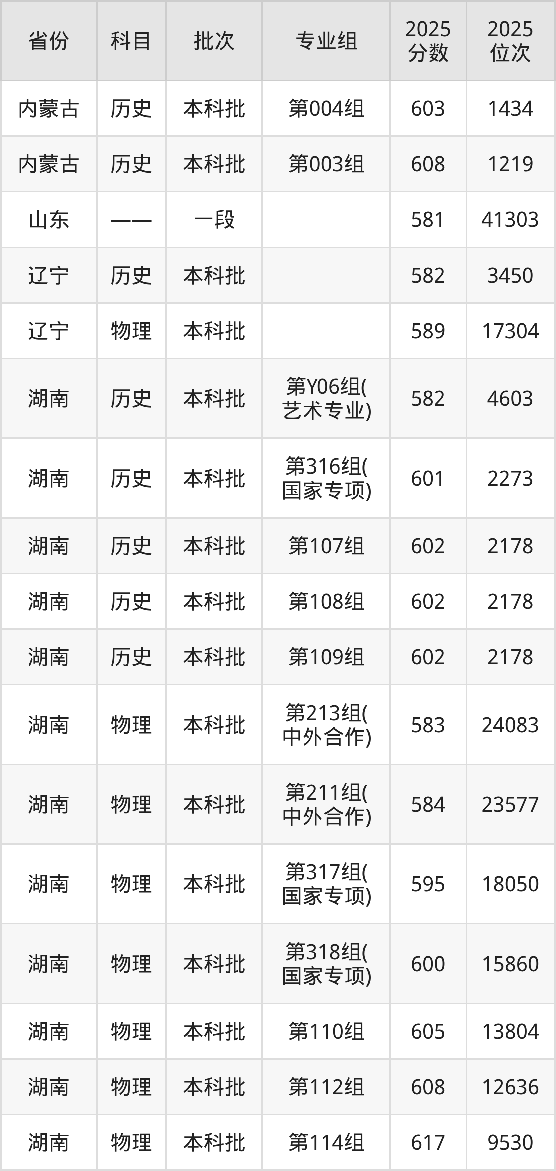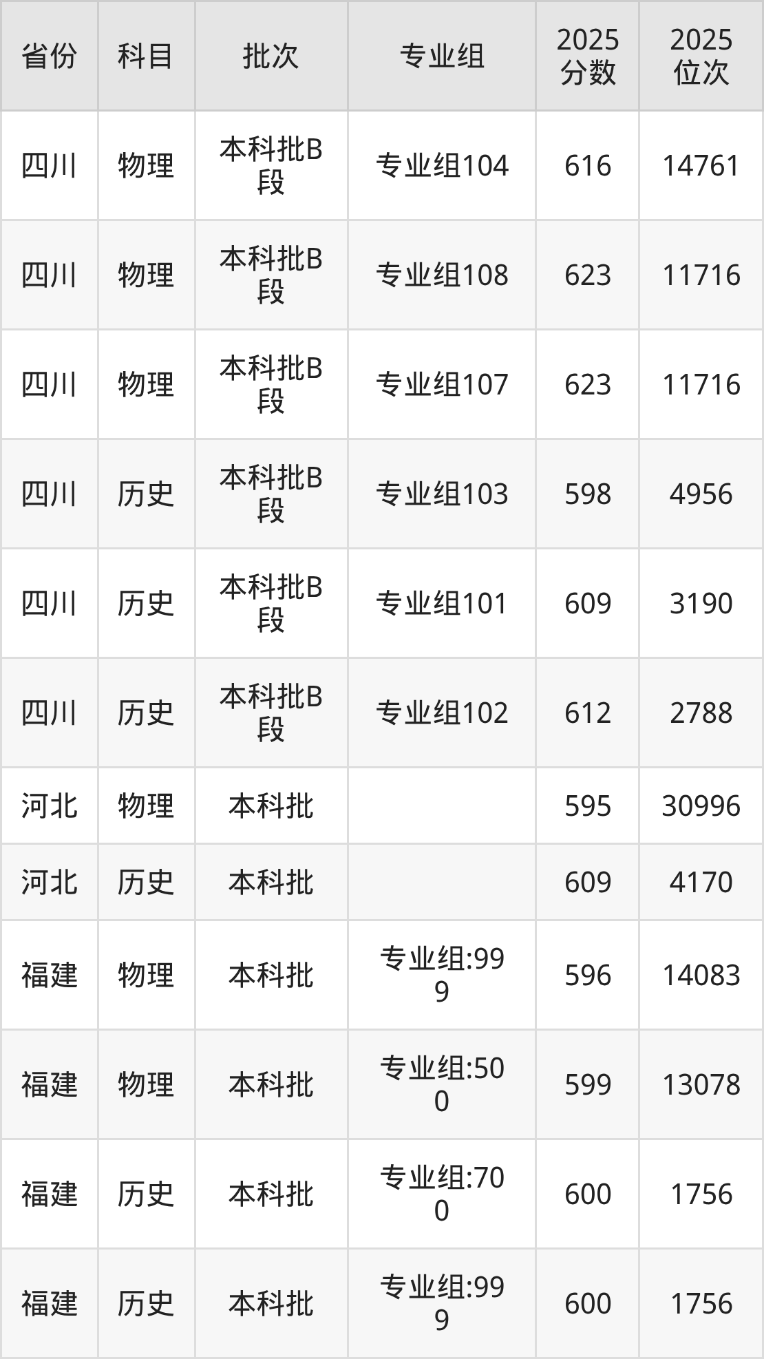 2025年投档录取最低分为609分,录取最低位次为4170名。