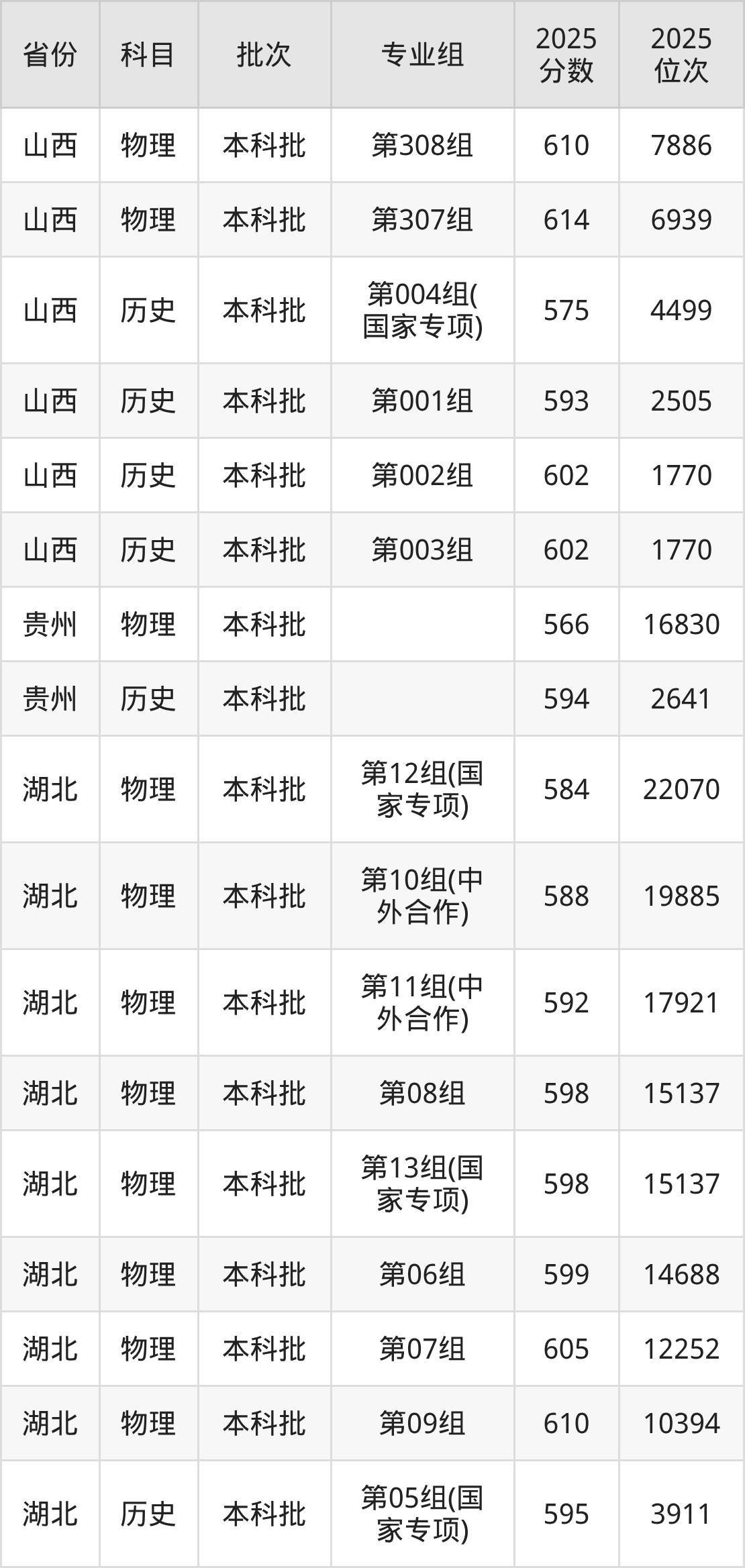 暨南大学第301组(国家专项计划组):2025年投档录取最低分为602分,录取最低位次为5707名。