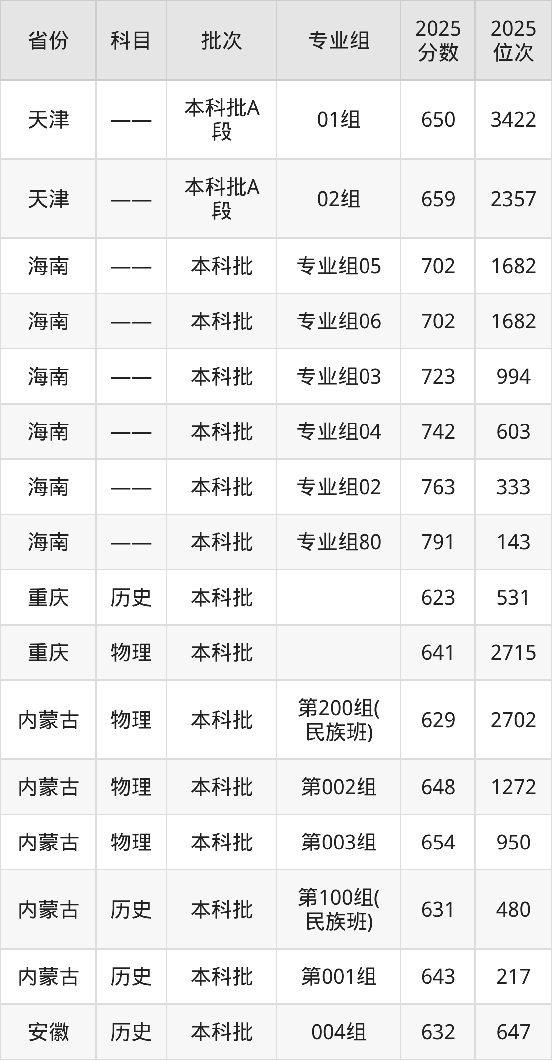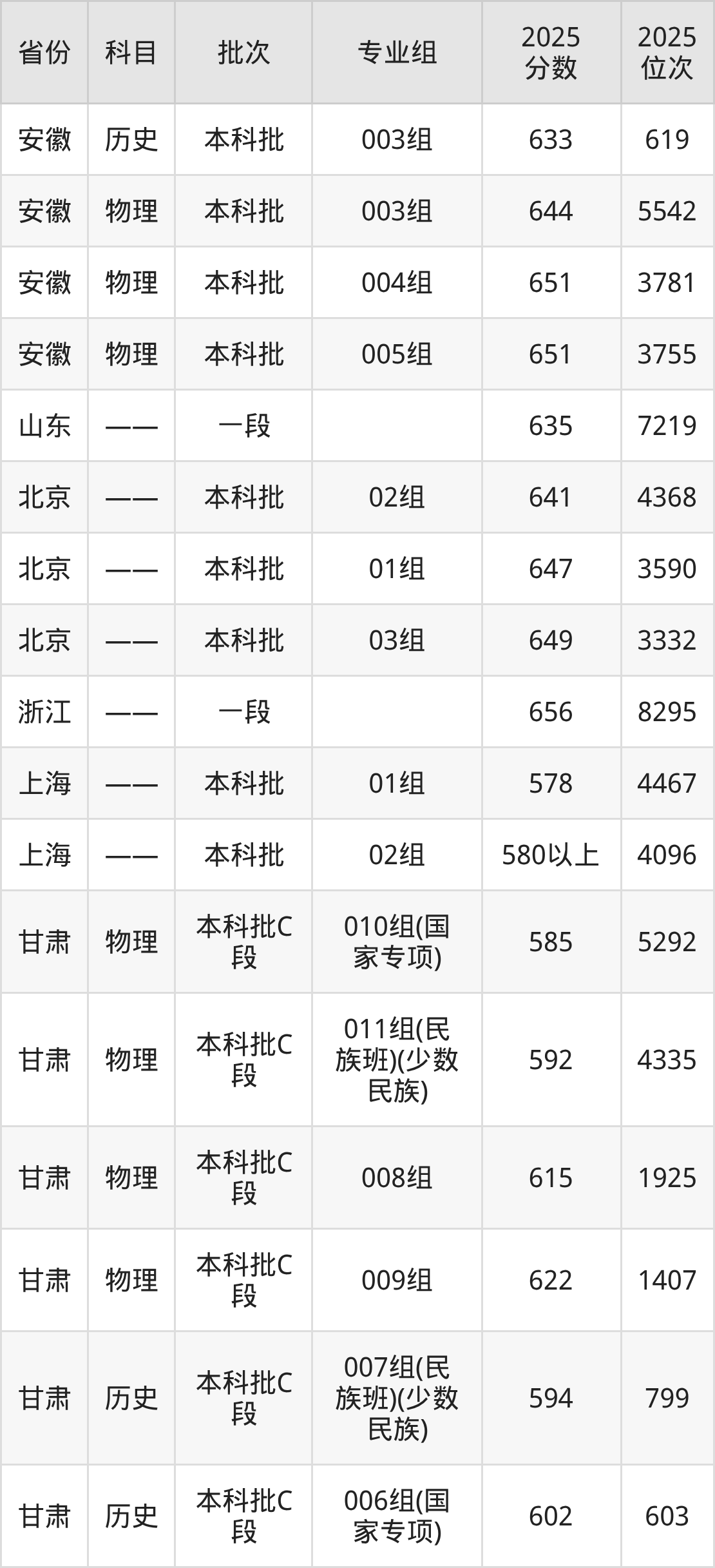 中山大学003组:2025年投档录取最低分为633分,录取最低位次为619名。