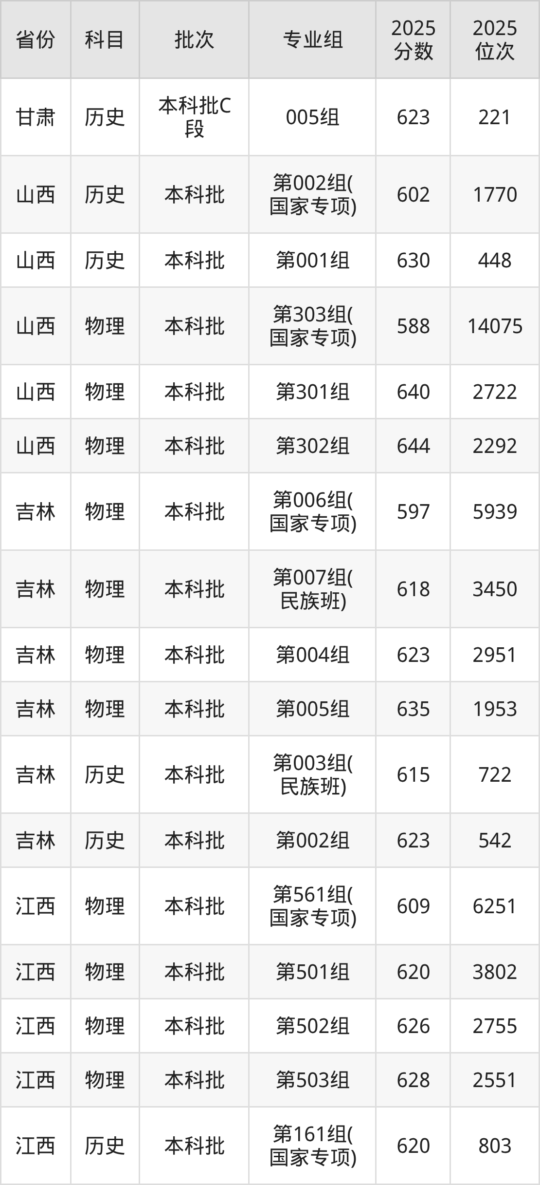 中山大学第303组(国家专项计划):2025年投档录取最低分为588分,录取最低位次为14075名。