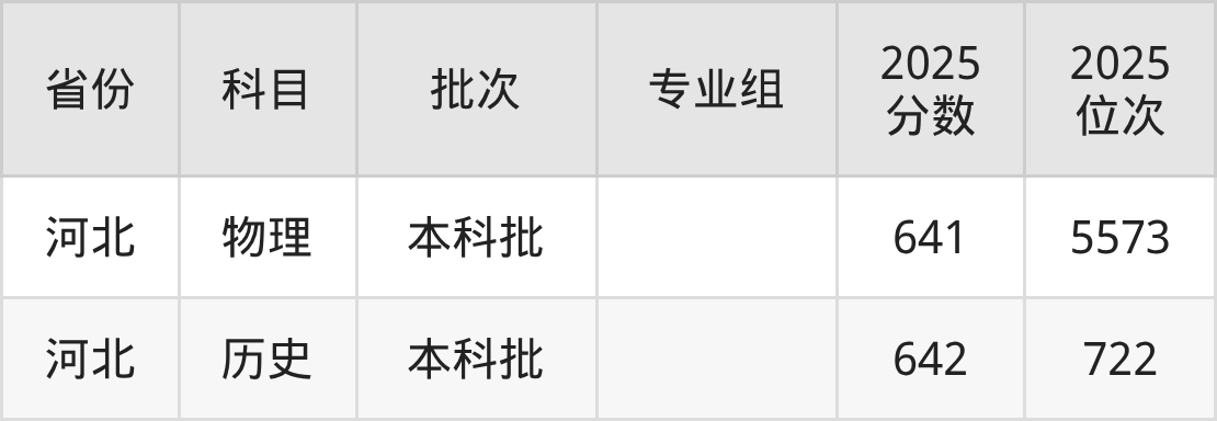 本科历史类投档录取最低642分,本科物理类投档录取最低641分