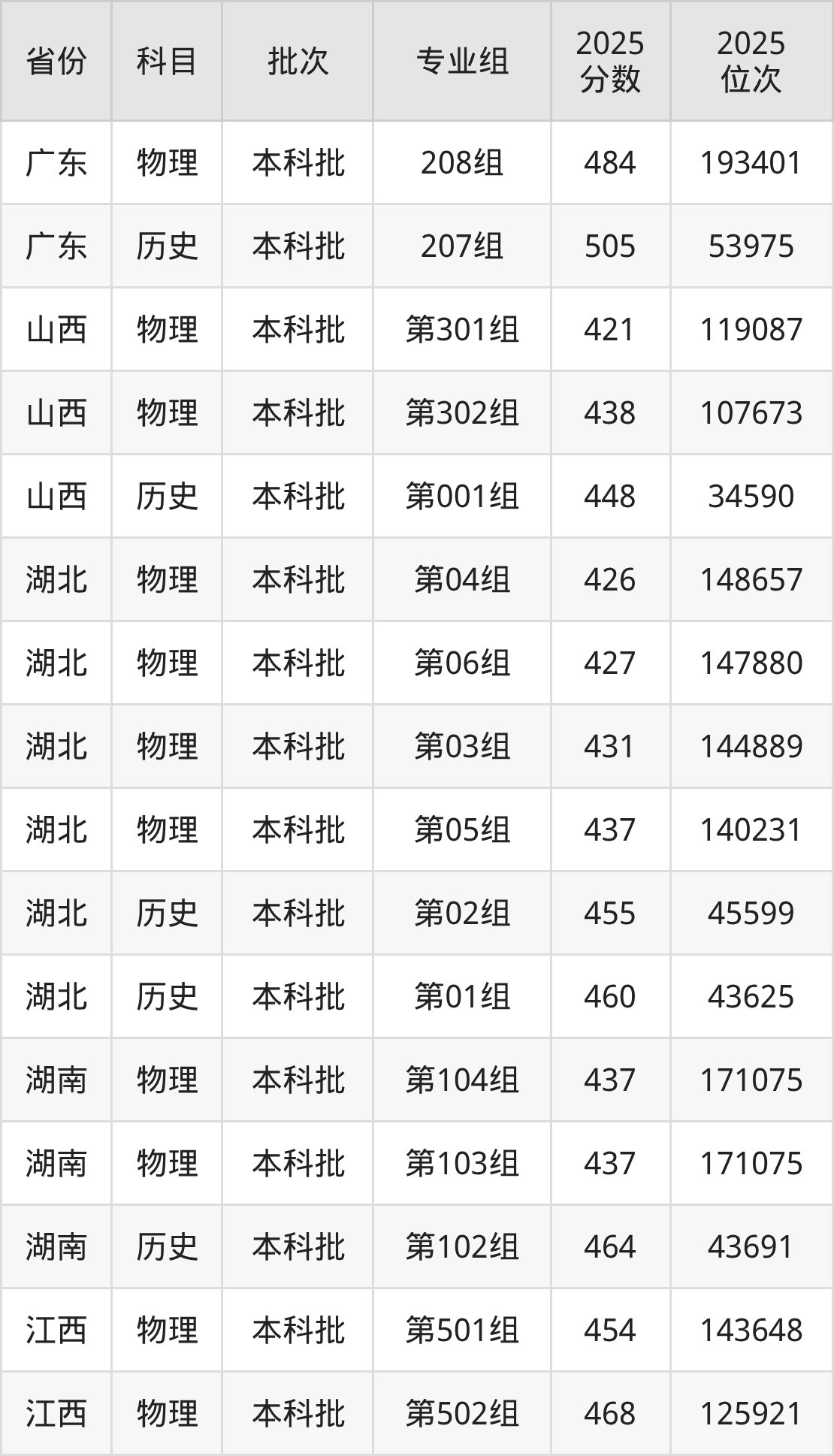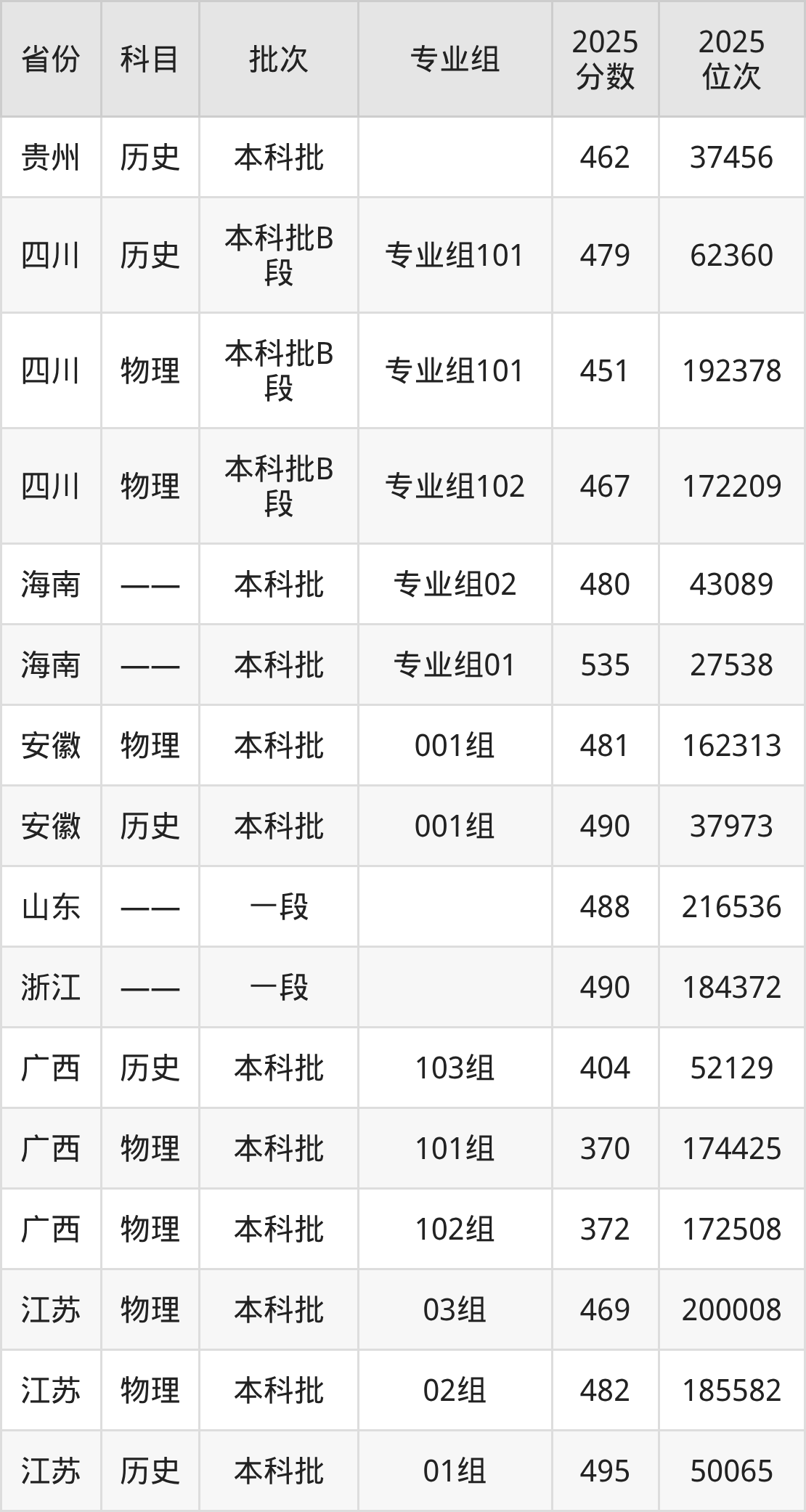 武汉晴川学院001组:2025年投档录取最低分为490分,录取最低位次为37973名。