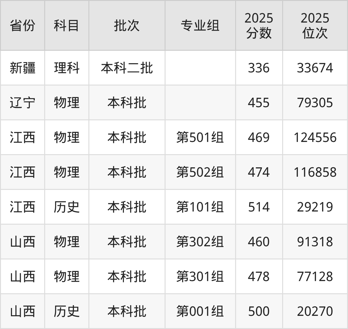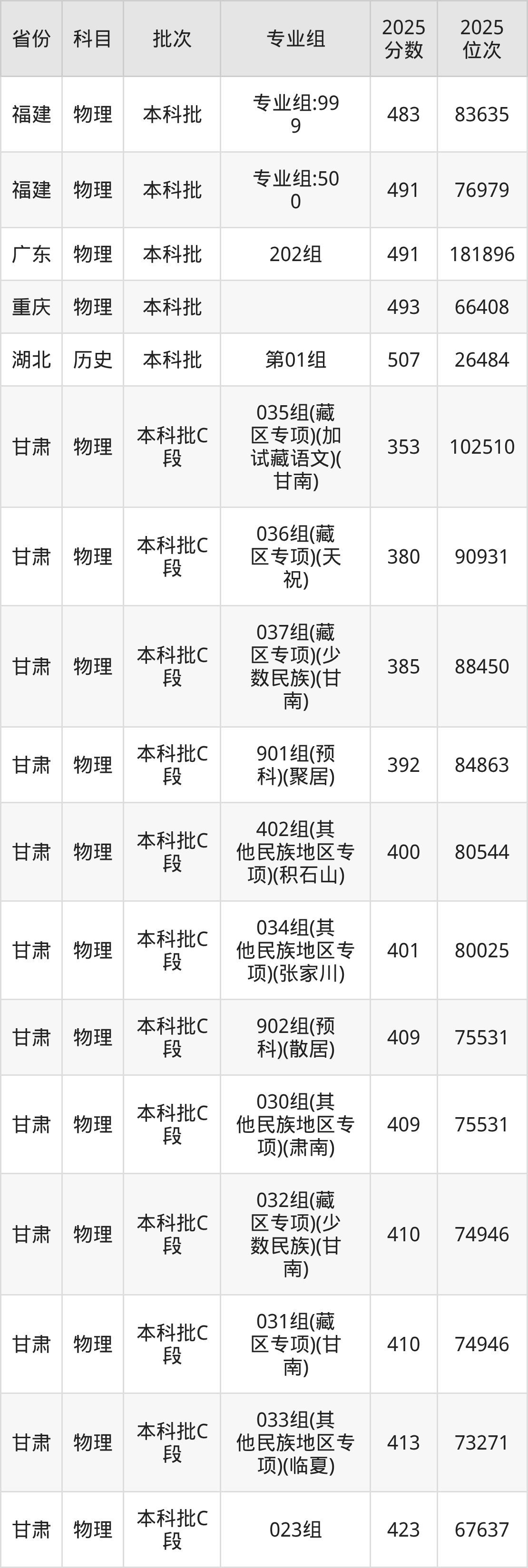 2025年在本科物理类进行招生,各专业组分数线详情如下: