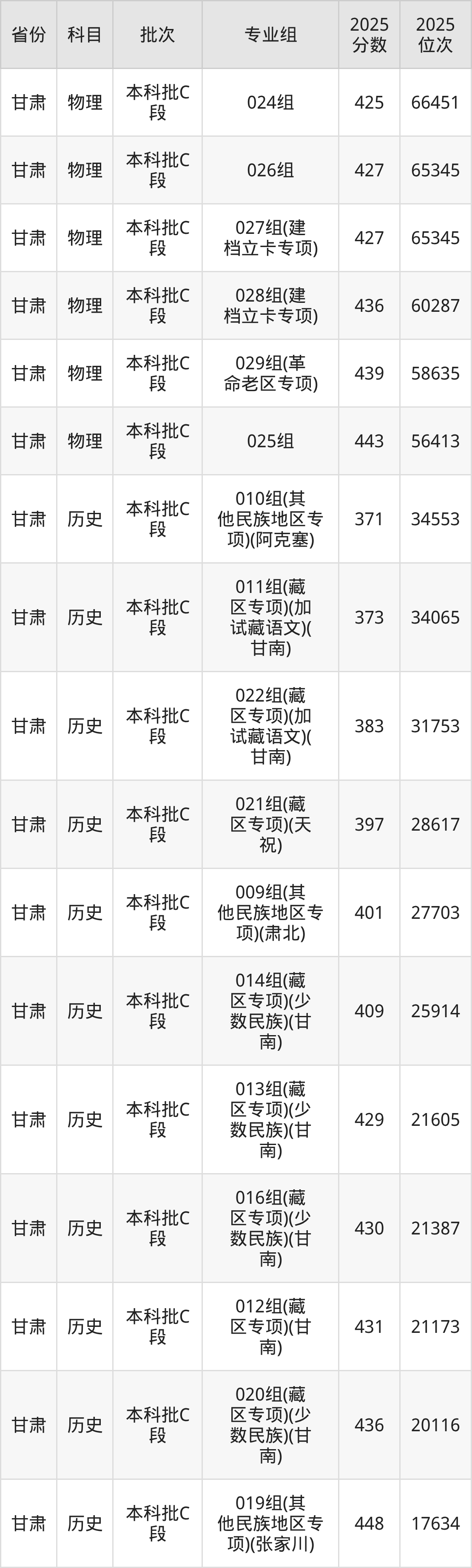 兰州城市学院020专业组(藏区专项)(少数民族)(甘南):2025年投档录取最低分为436分,录取最低位次为20116名。
