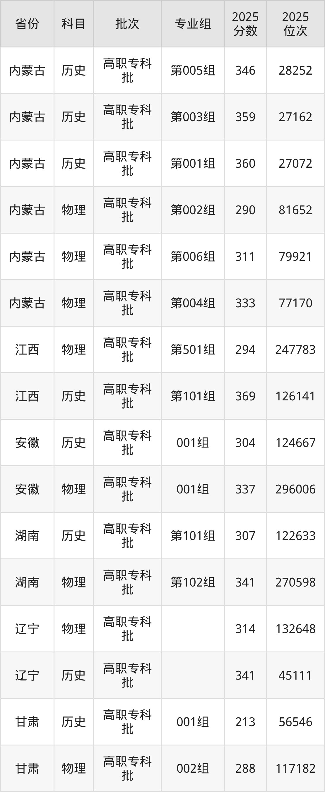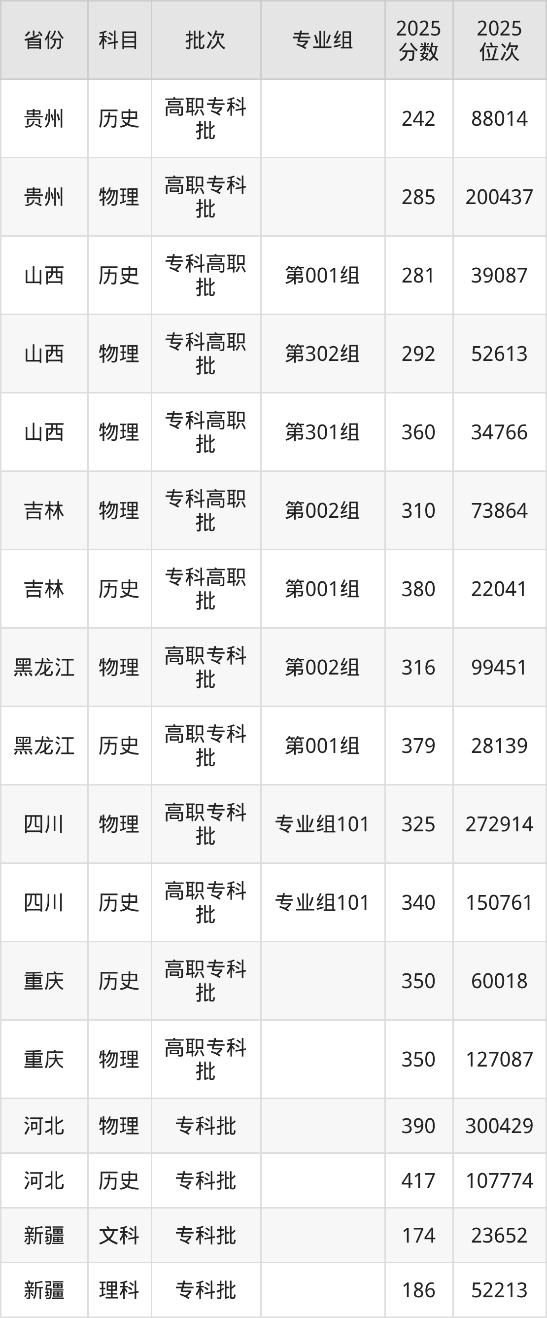 下面是2025年盘锦职业技术学院全国录取分数线一览表,请查阅。