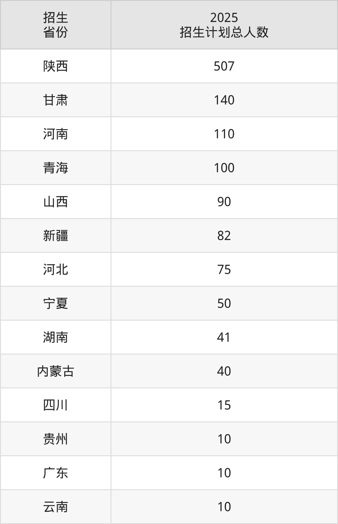 2025年陕西青年职业学院面向全国14个省市开展专科招生;招生专业共27个,招生人数共1280人。2025年在陕西省招生计划总人数是507人,其中,陕西青年职业学院在陕西省招生人数最多的是小学教育。陕西青年职业学院在各省具体招生人数情况如下表。
