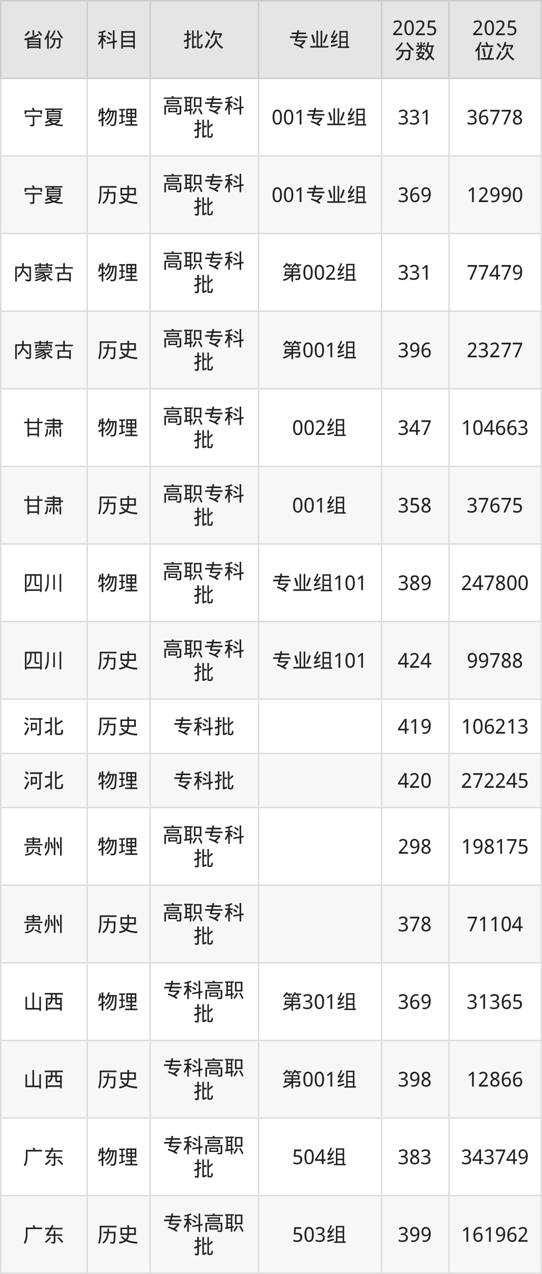 陕西青年职业学院001专业组:2025年投档录取最低分为331分,录取最低位次为36778名。
