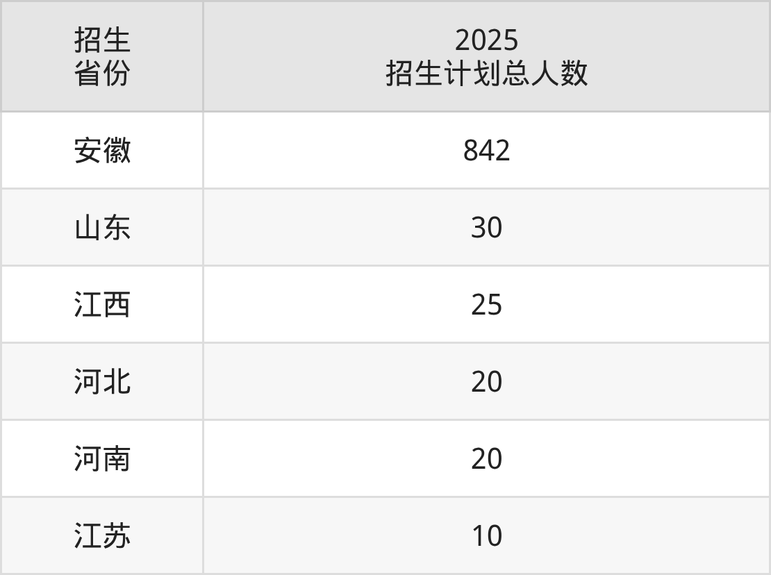 2025年阜阳职业技术学院面向全国6个省市开展专科招生;招生专业共29个,招生人数共947人。2025年在安徽省招生计划总人数是842人,其中,阜阳职业技术学院在安徽省招生人数最多的是计算机网络技术。阜阳职业技术学院在各省具体招生人数情况如下表。