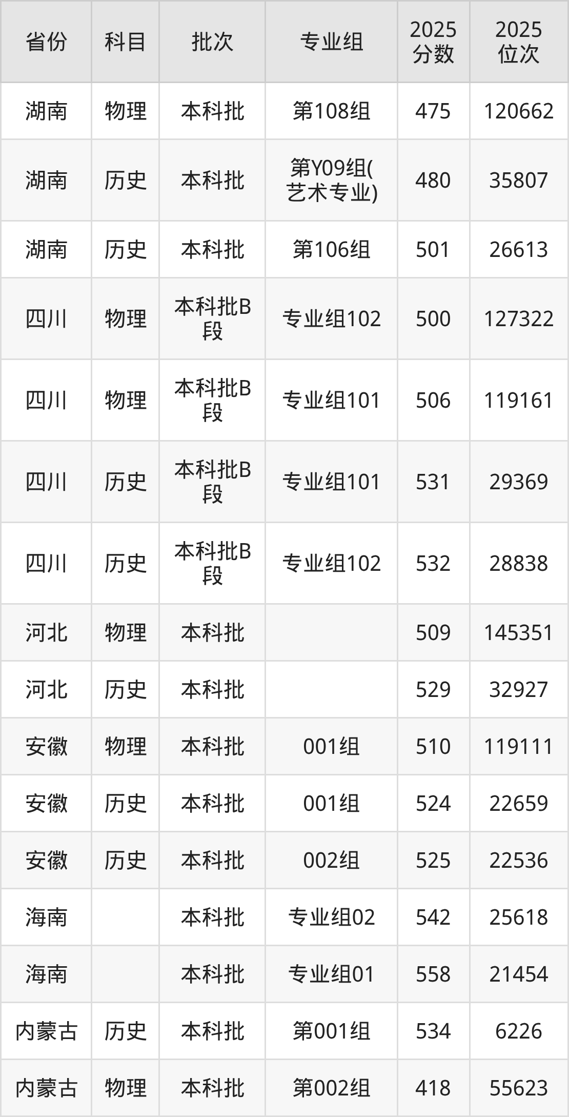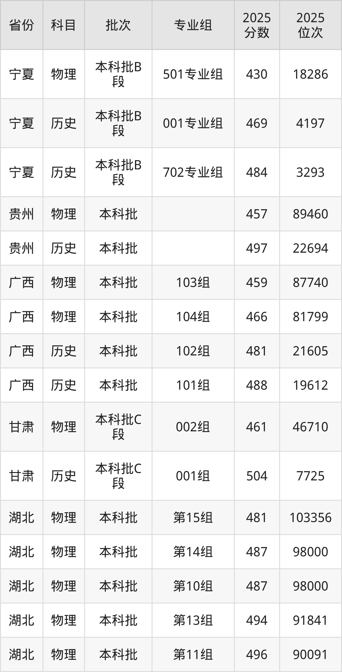 黄冈师范学院501专业组:2025年投档录取最低分为430分,录取最低位次为18286名。