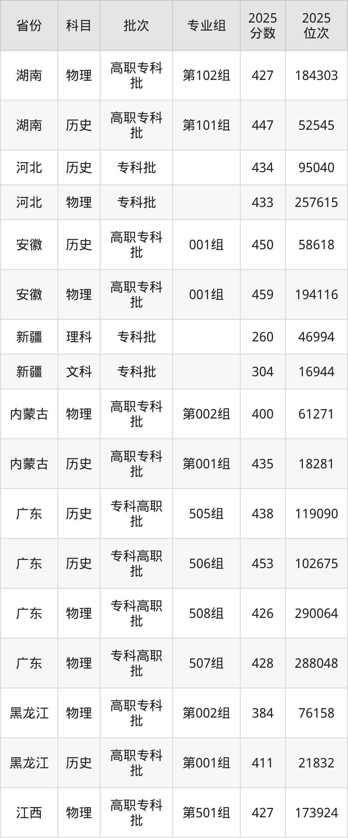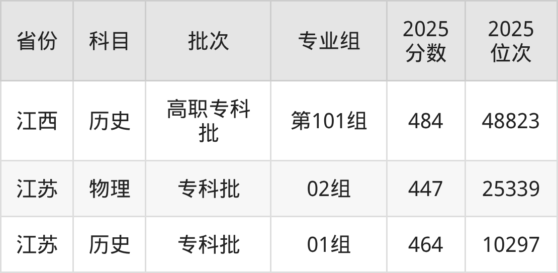 普通类专科物理类最低447分,专科历史类最低464分