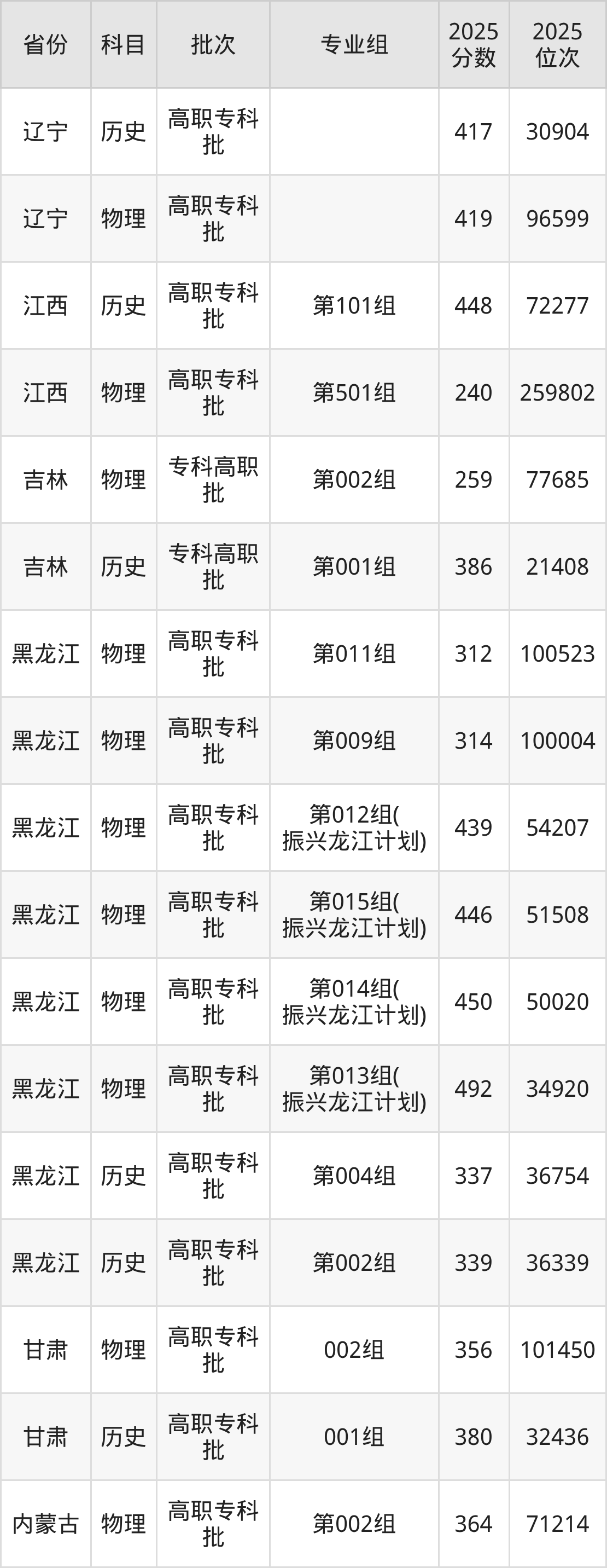 下面是2025年黑龙江护理高等专科学校全国录取分数线一览表,请查阅。