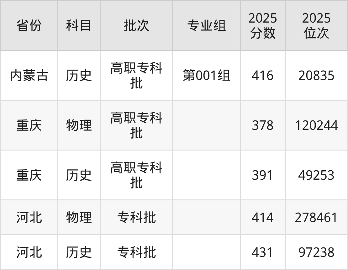 黑龙江护理高等专科学校第002组:2025年投档录取最低分为429分,录取最低位次为5832名。