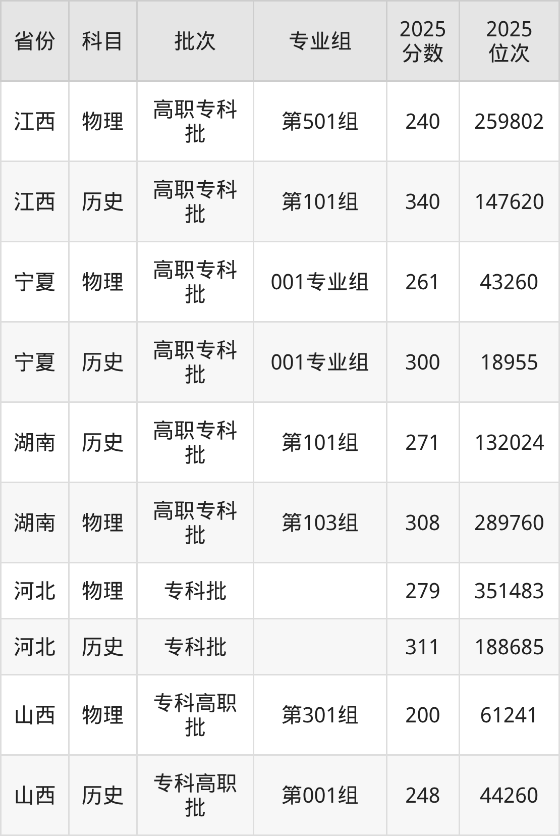 江西新能源科技职业学院001专业组:2025年投档录取最低分为300分,录取最低位次为18955名。