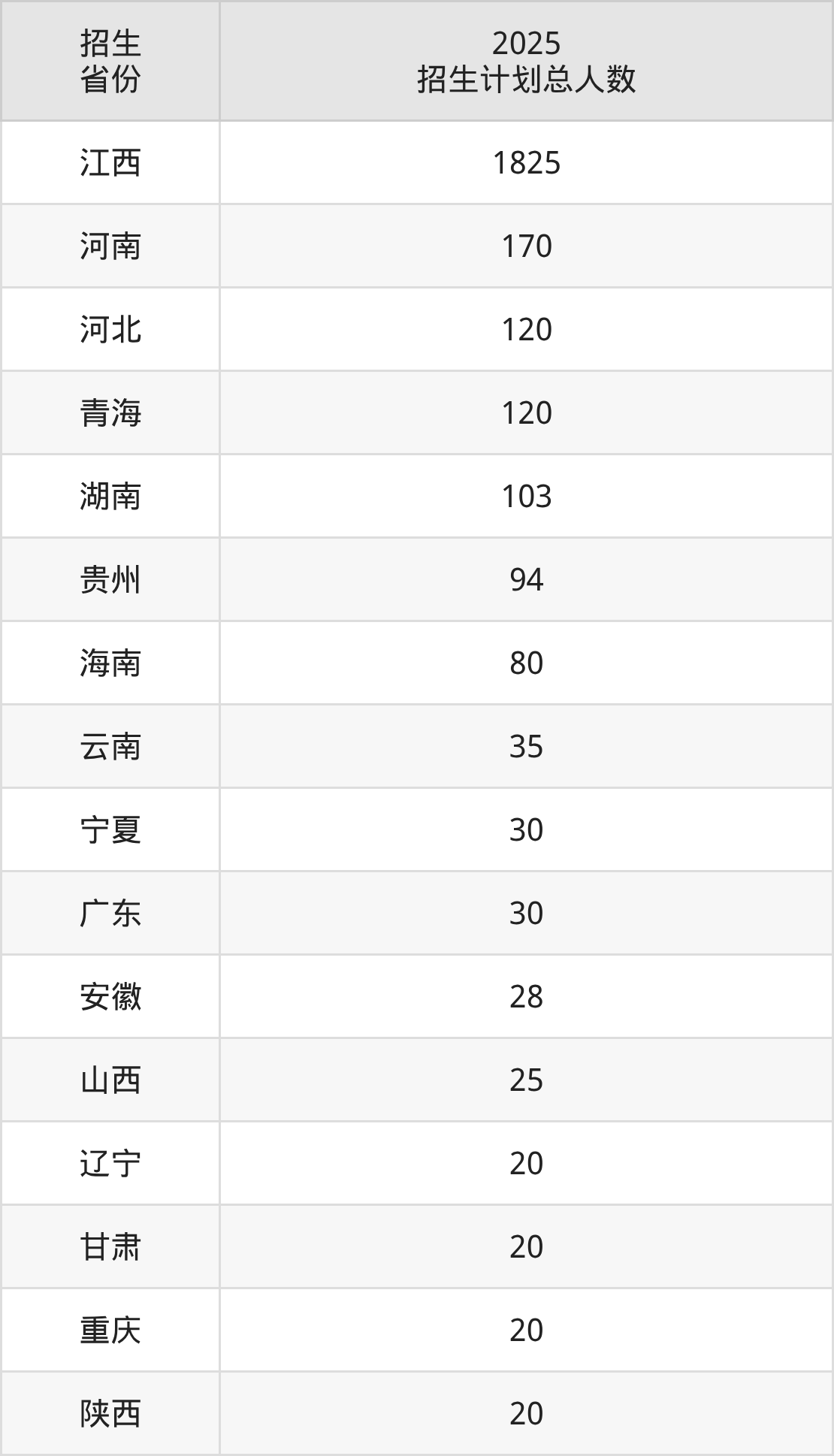 2025年江西新能源科技职业学院面向全国18个省市开展专科招生;招生专业共36个,招生人数共2770人。2025年在江西省招生计划总人数是1825人,其中,江西新能源科技职业学院在江西省招生人数最多的是新能源汽车技术。江西新能源科技职业学院在各省具体招生人数情况如下表。