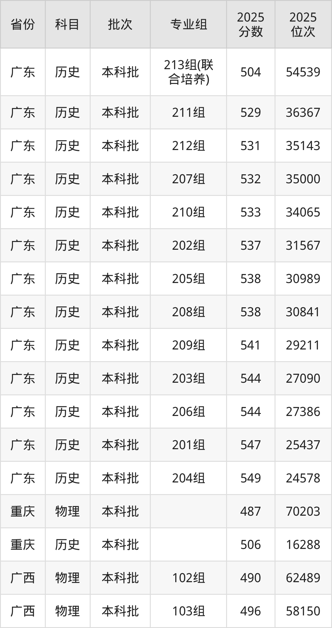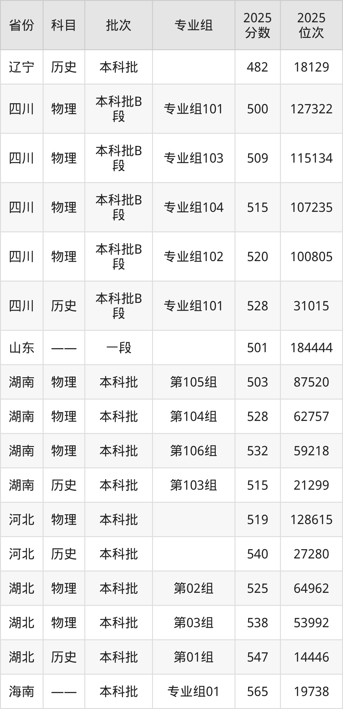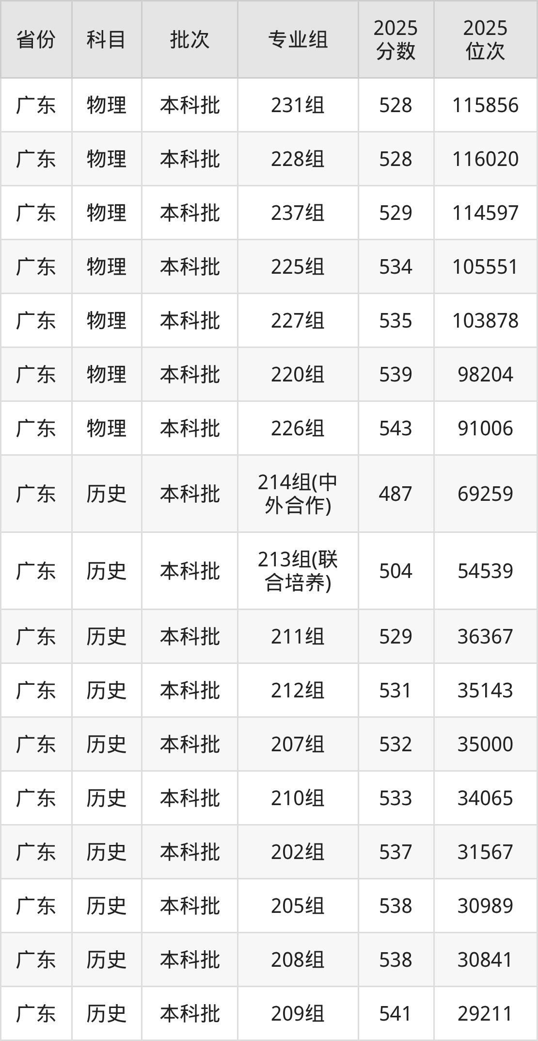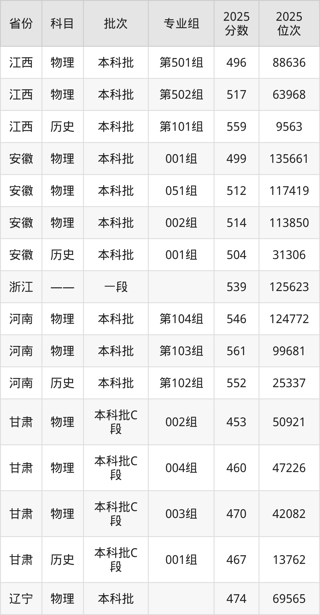 2025年在本科物理类进行招生,各专业组分数线详情如下: