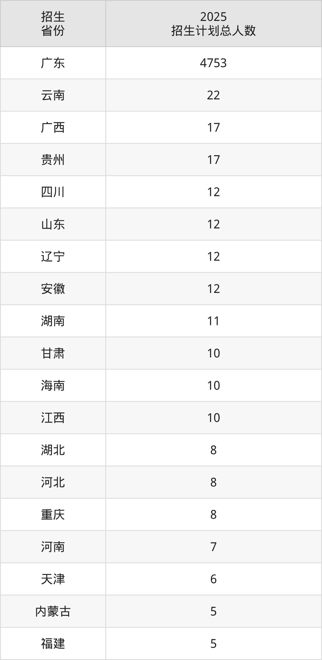 2025年惠州学院面向全国19个省市开展本科招生;招生专业共40个,招生人数共4945人。2025年在广东省招生计划总人数是4753人,其中,惠州学院在广东省招生人数最多的是计算机类。惠州学院在各省具体招生人数情况如下表。