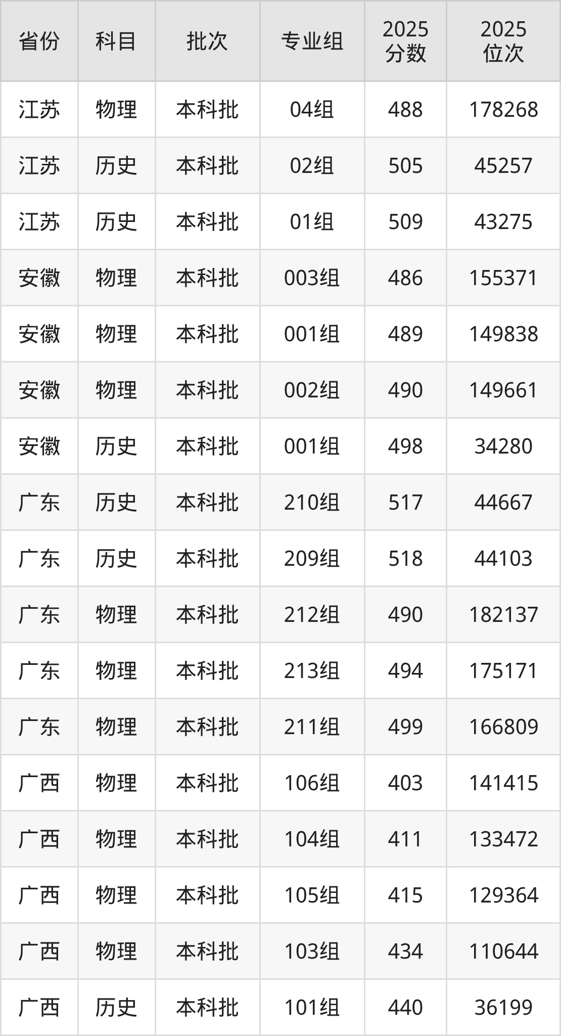 普通类本科物理类最低490分,本科历史类最低517分