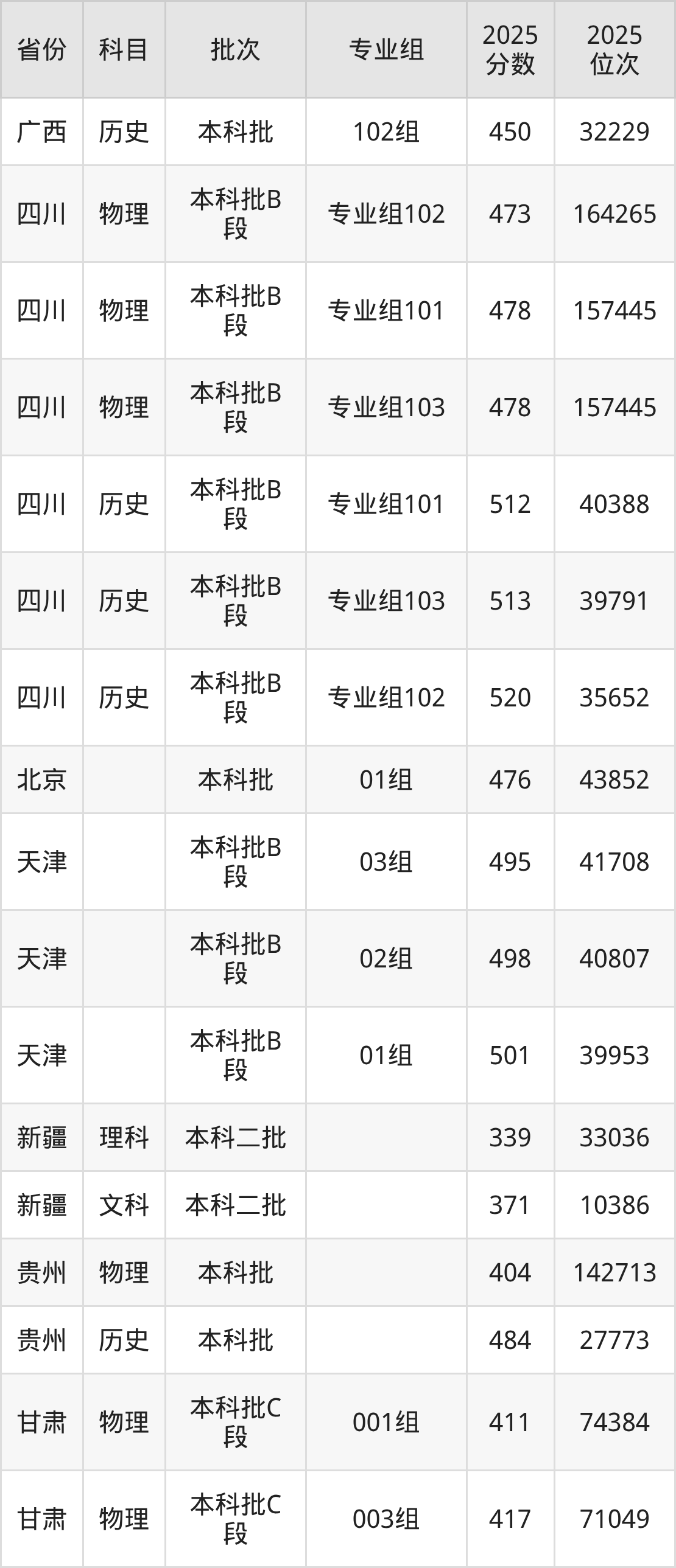 普通类本科物理类最低473分,本科历史类最低512分