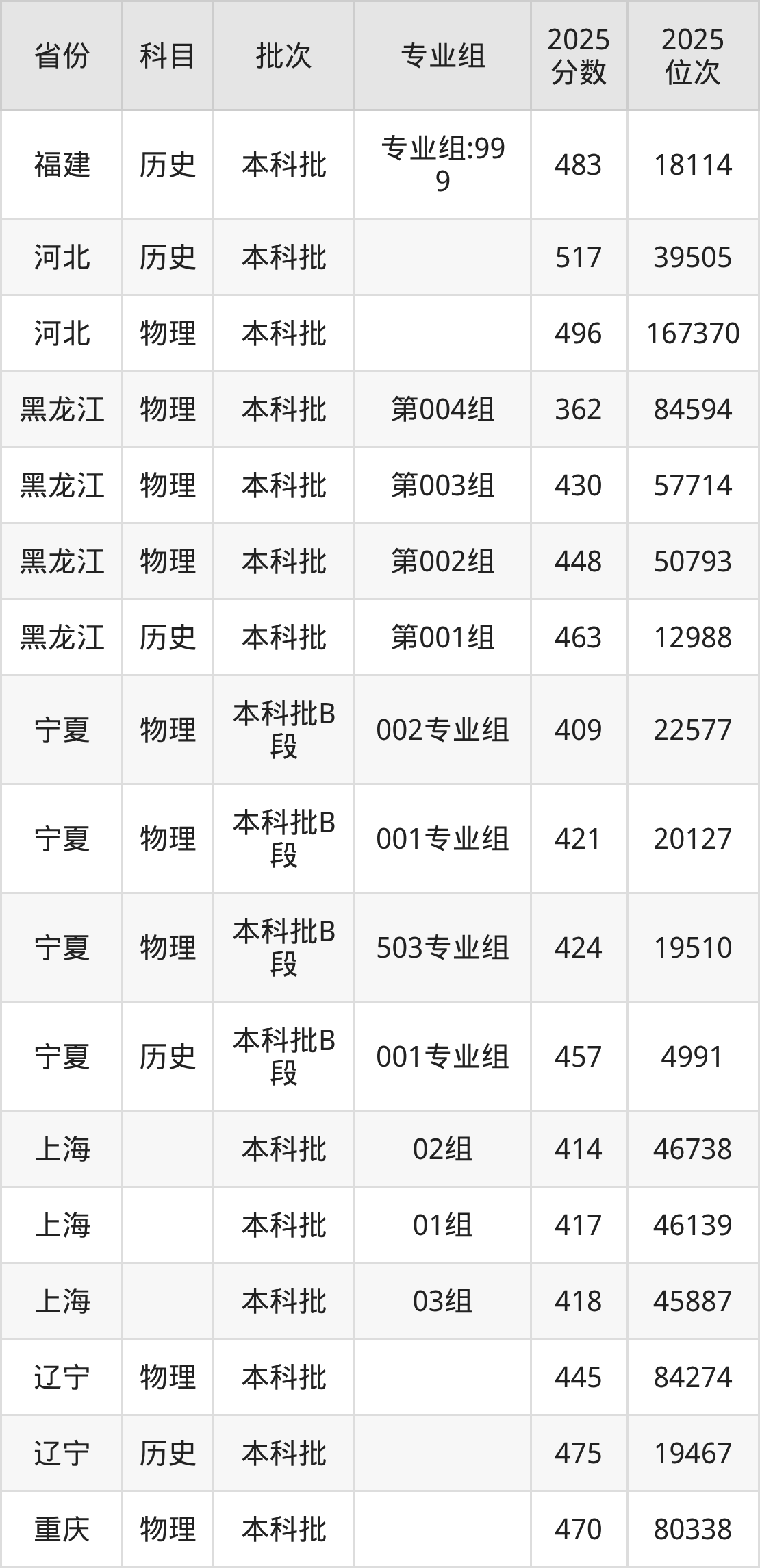 厦门大学嘉庚学院001组:2025年投档录取最低分为489分,录取最低位次为149838名。