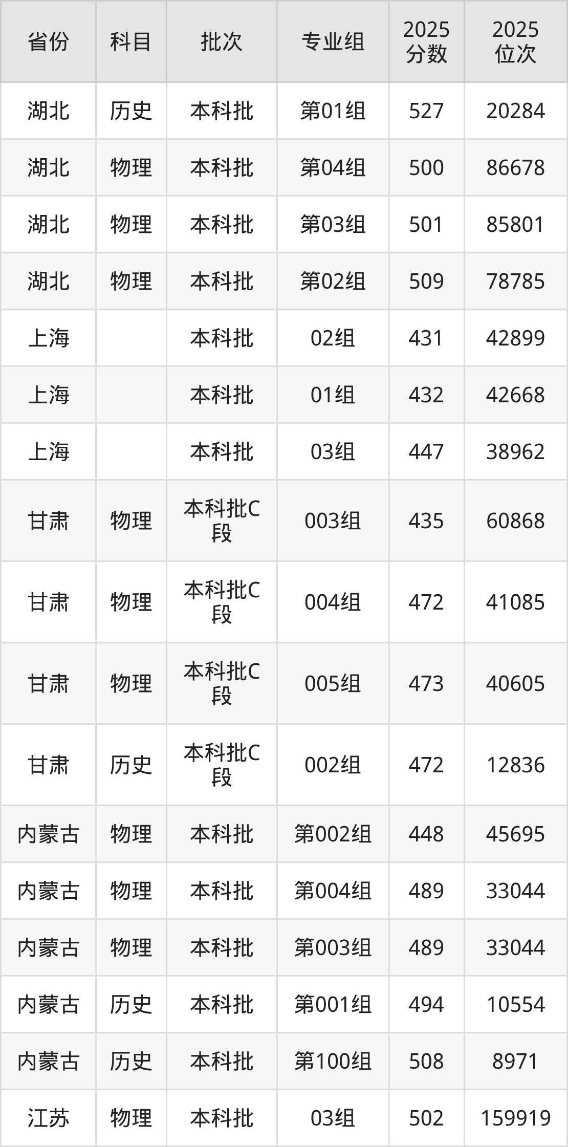 湘南学院第003组:2025年投档录取最低分为430分,录取最低位次为57714名。